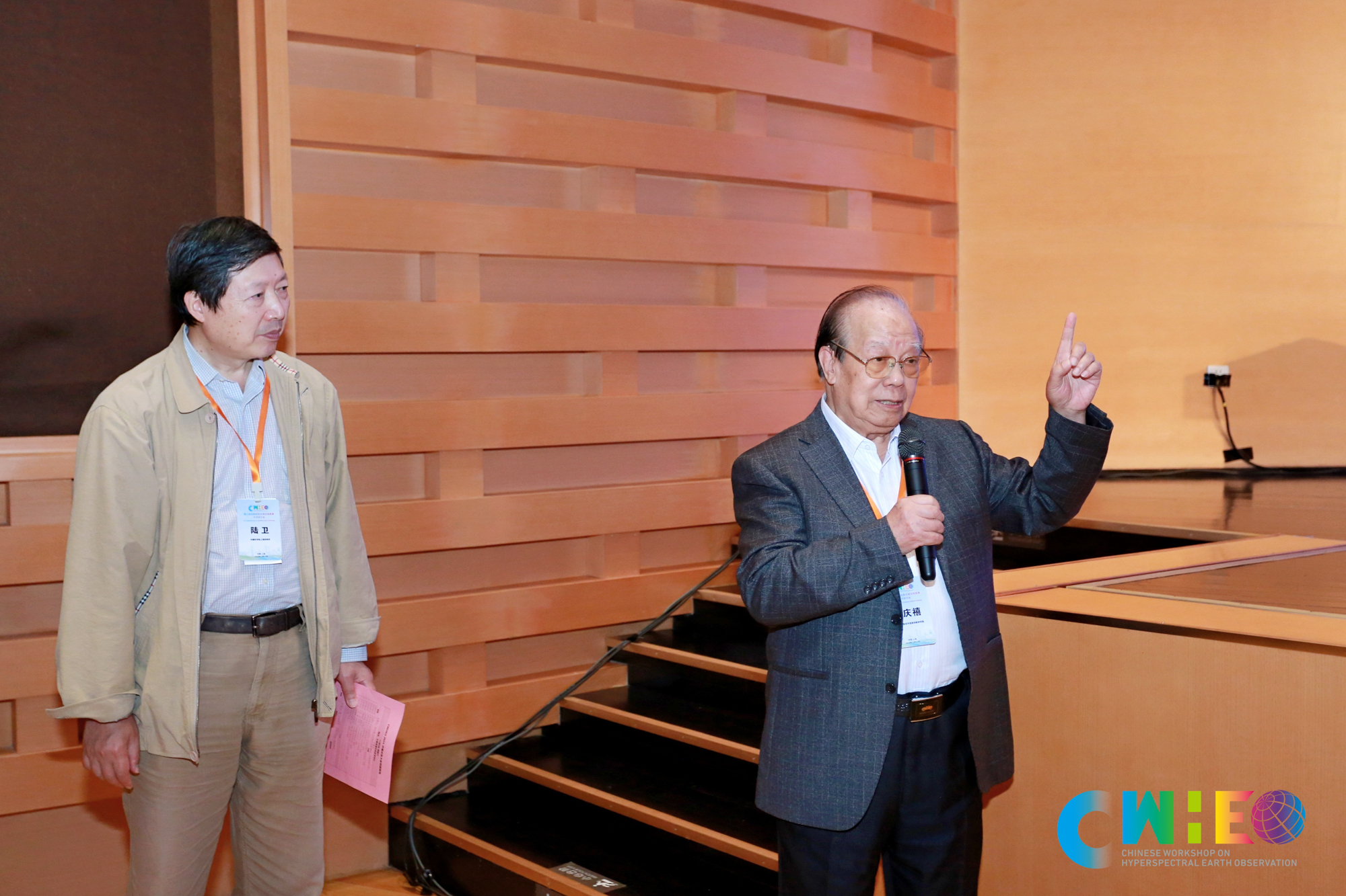 中国科学院上海技术物理研究所陆卫(左)研究员主持大会主旨报告