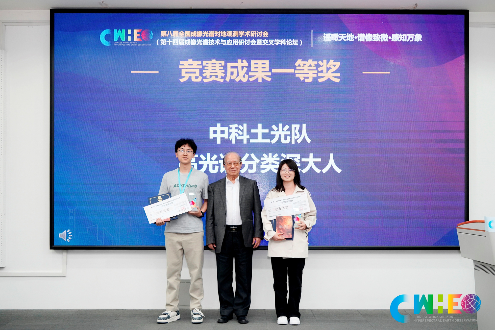 童庆禧院士为竞赛成果一等奖队伍颁奖