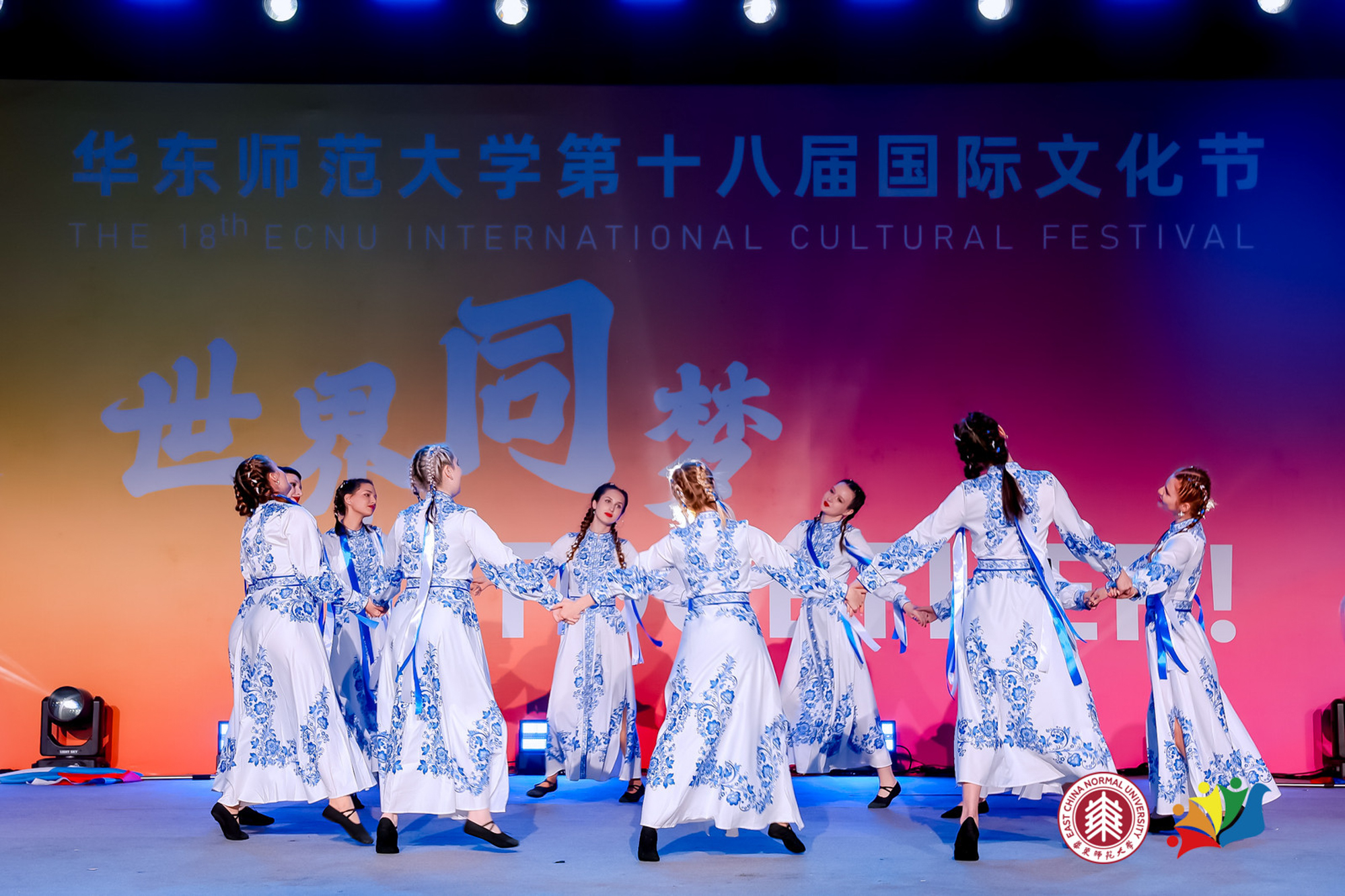 当晚,中外学生文艺汇演隆重举行,现场座无虚席,气氛热烈!ECNU国际学生舞蹈社、印度尼西亚、捷克、日本、土库曼斯坦的国际学生们或深情演唱,或动感热舞,展现了流行文化的魅力。