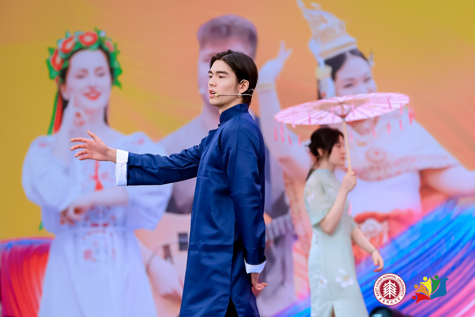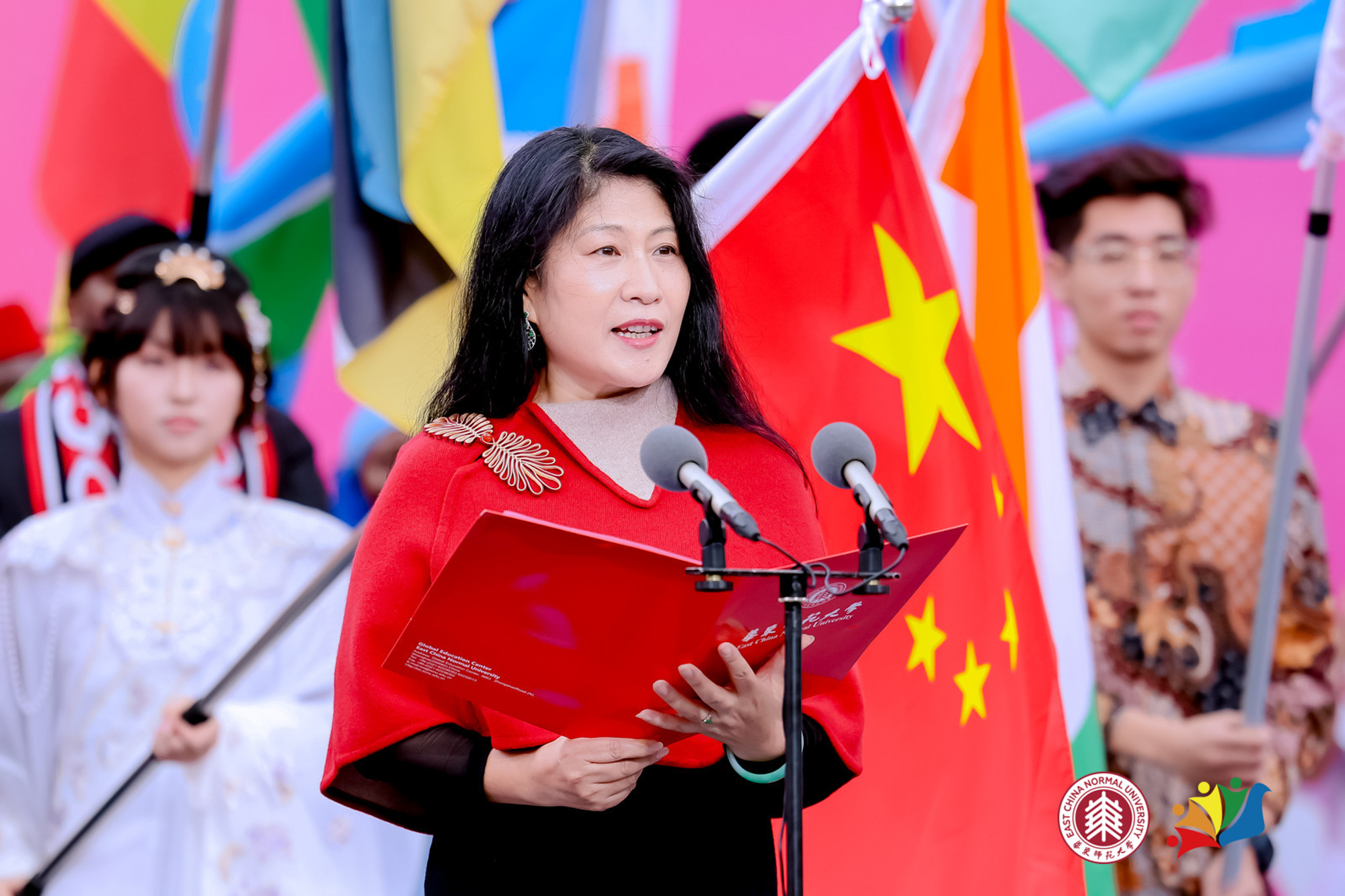 华东师大国际教育中心主任黄美旭在开幕式上致辞,“国际文化节营造了开放、多元和包容的氛围,搭建了一个展示各国文化风俗、分享彼此故事的舞台,构成了一幅多姿多彩的全球文化拼图,帮助我们拓宽眼界,增进理解,它不仅是一场感官的盛宴,更是一场思想与文化的碰撞,同时也为学校、师生和社区创造了一个共享的文化空间。”
