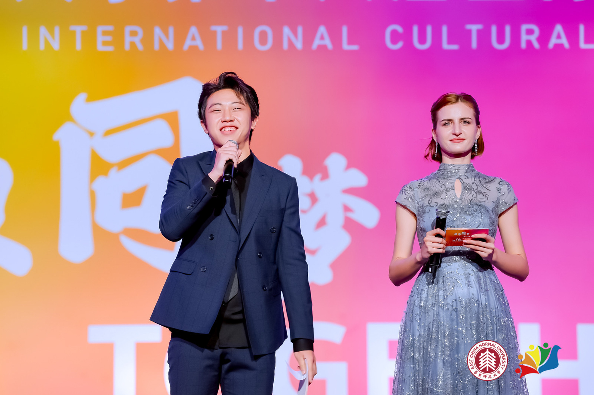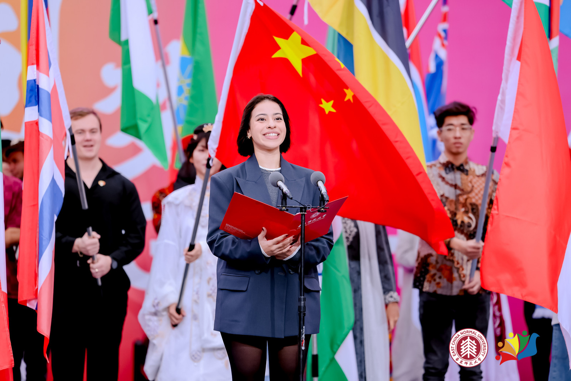 来自埃及的国际汉语文化学院本科生叶思旻作为国际学生代表激动地分享道:“我的哥哥姐姐都曾是华东师大的学生,记得他们当年总告诉我‘爱在华师大’,这并不只是一句口号,而是他们真实经历过的温暖和感动。三年前,我也如愿成为了一名华东师大学生,在校园里结识了来自世界各地的朋友,我们的友谊跨越国界和文化的差异。在这里我找到了归属感,这份归属感来自于我与朋友们的深厚友谊,更来自于像国际文化节这样每一次一同欢聚的时刻!这种有爱的氛围让我爱上了文化节,也让我深深地爱上了华东师大这个有爱的大家庭!”。
