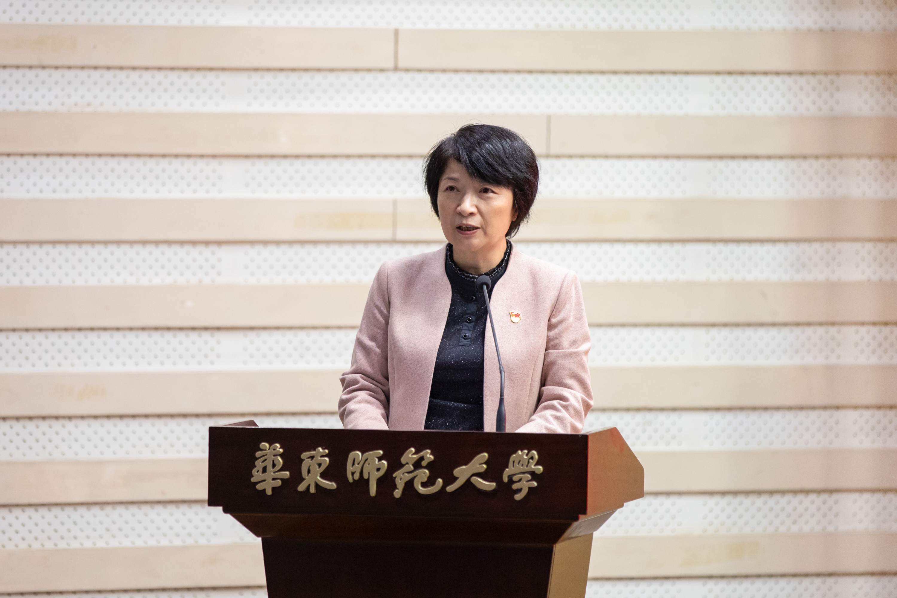 华东师大校党委书记梅兵主持报告会并讲话