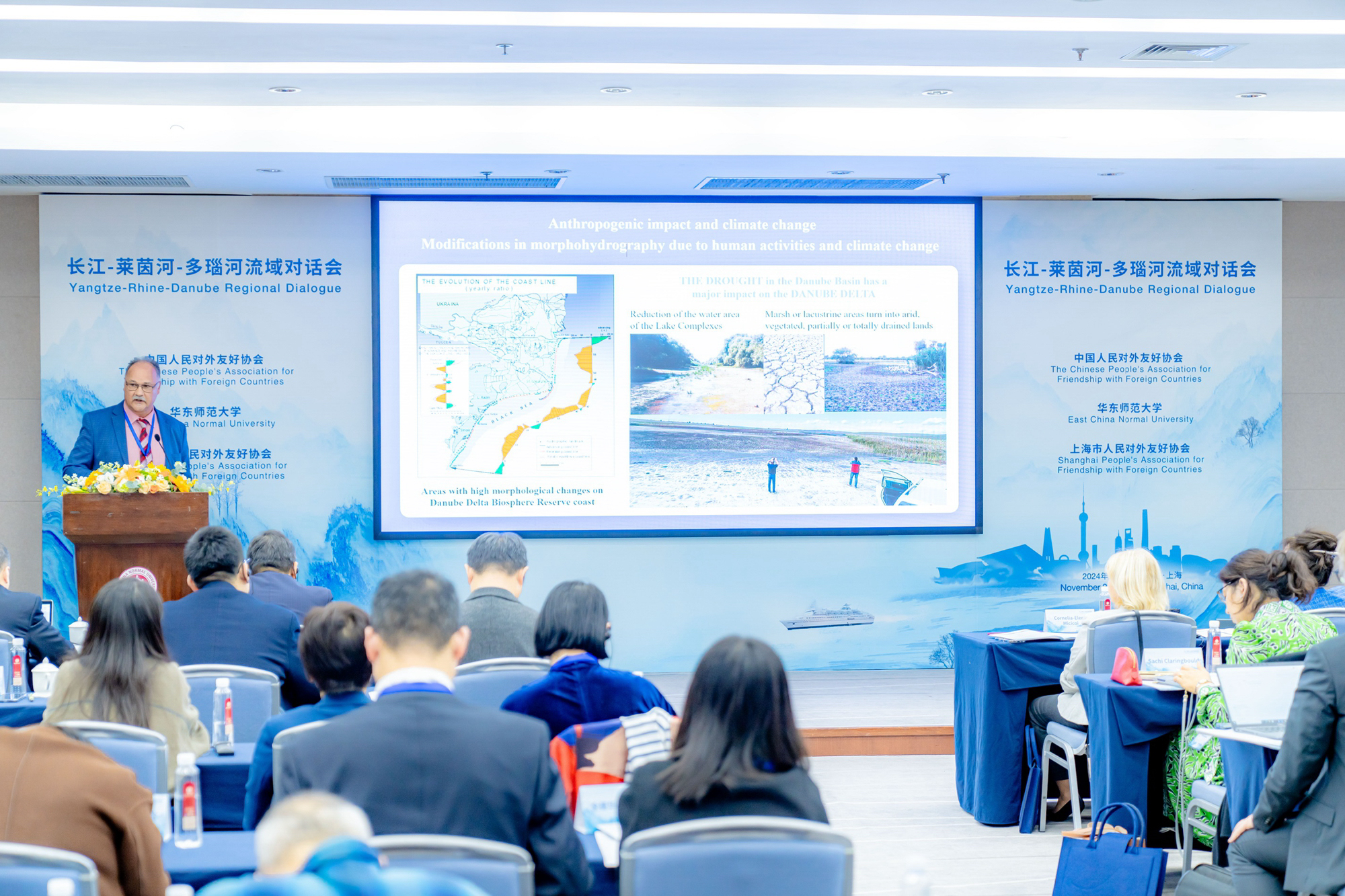 荷兰代尔夫特理工大学海伯特·德·弗里恩德教授、罗马尼亚国立多瑙河三角洲研发所研究员尤利安·尼切尔斯以及永利皇宫登录官网河口海岸学国家重点实验室主任何青教授分别作了主旨报告,深入探讨了莱茵-马斯-斯海尔德河及其三角洲、多瑙河三角洲的保护与修复以及长江三角洲的陆海相互作用与人类活动影响等议题。