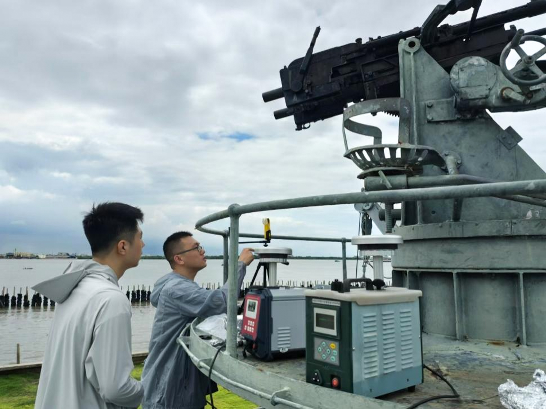 团队成员在河流沿岸布设微塑料大气采样器(2024年7月,泰国曼谷)