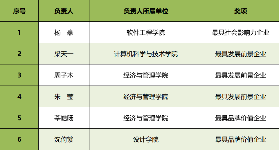 表6.2024年度永利皇宫登录官网创新创业优秀学生(企业类)