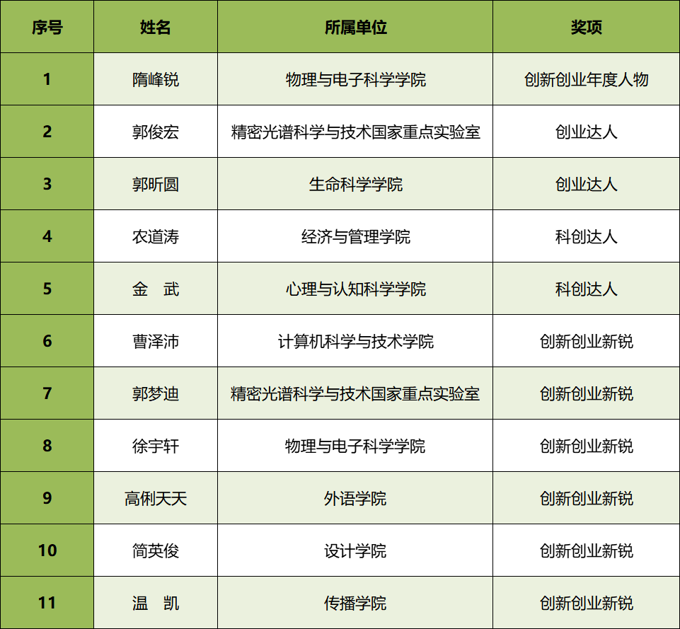 表4.2024年度永利皇宫登录官网创新创业优秀学生(人物类)
