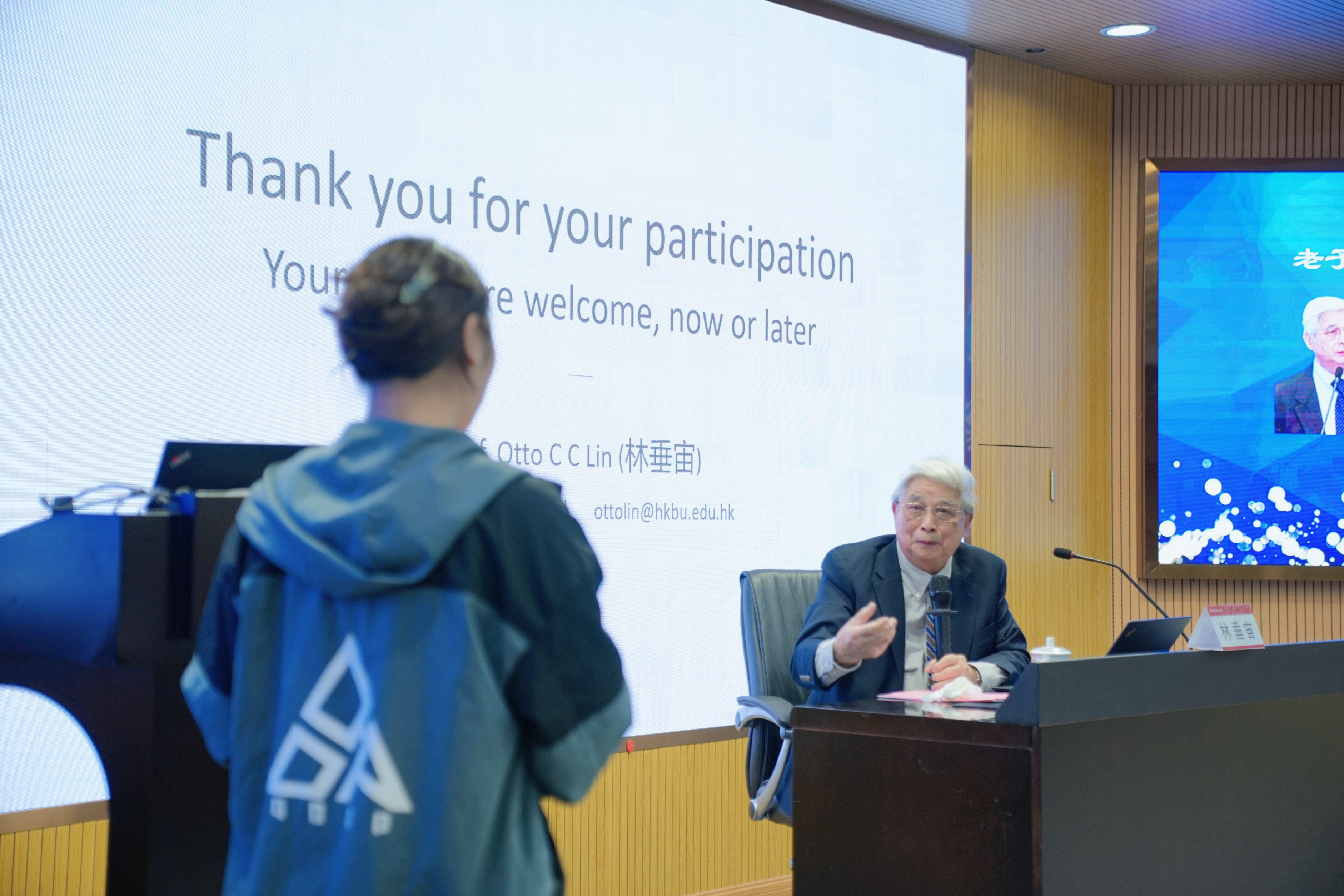 在互动环节,同学们踊跃提问,与林垂宙院士就老子思维的创新思想与当代运用进行对话交流。林垂宙院士鼓励华东师大学子积极探索、理解传统文化与现代创新的融合发展,主动学习、汲取中华优秀传统文化中的宝贵精粹,激励大家围绕“传统文化与现代科技的契合性发展”进行创新思考,在创造性转化和创新性发展中走向更加美好的未来。