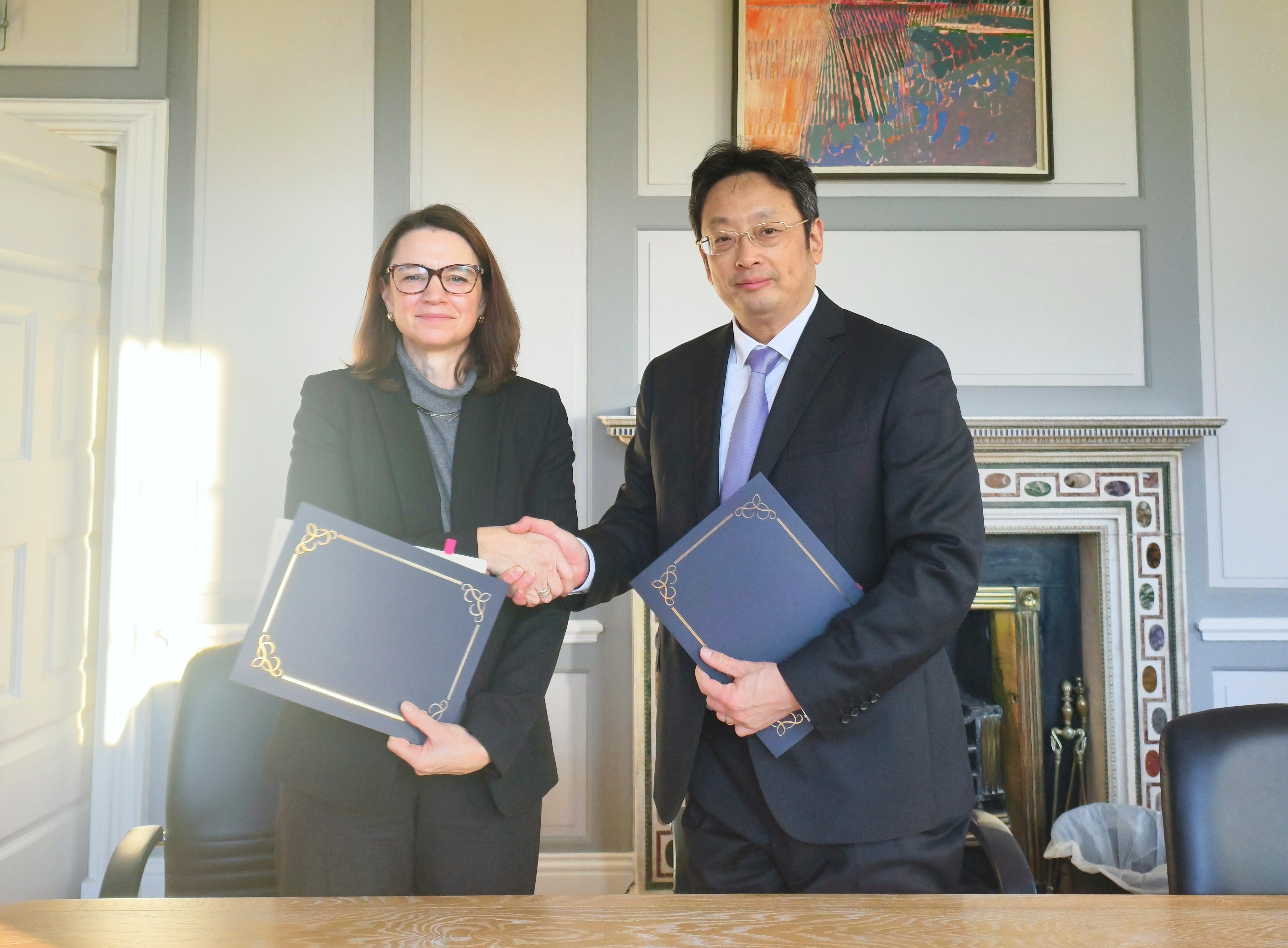 访问爱尔兰都柏林城市大学期间,施国跃与该校外事副校长Laura Mahoney共同续签合作协议,开启两校第三轮合作。施国跃表示,双方学校在教育领域具有深厚的积淀,未来可以在现有合作基础上,进一步挖掘更广泛的合作机会。