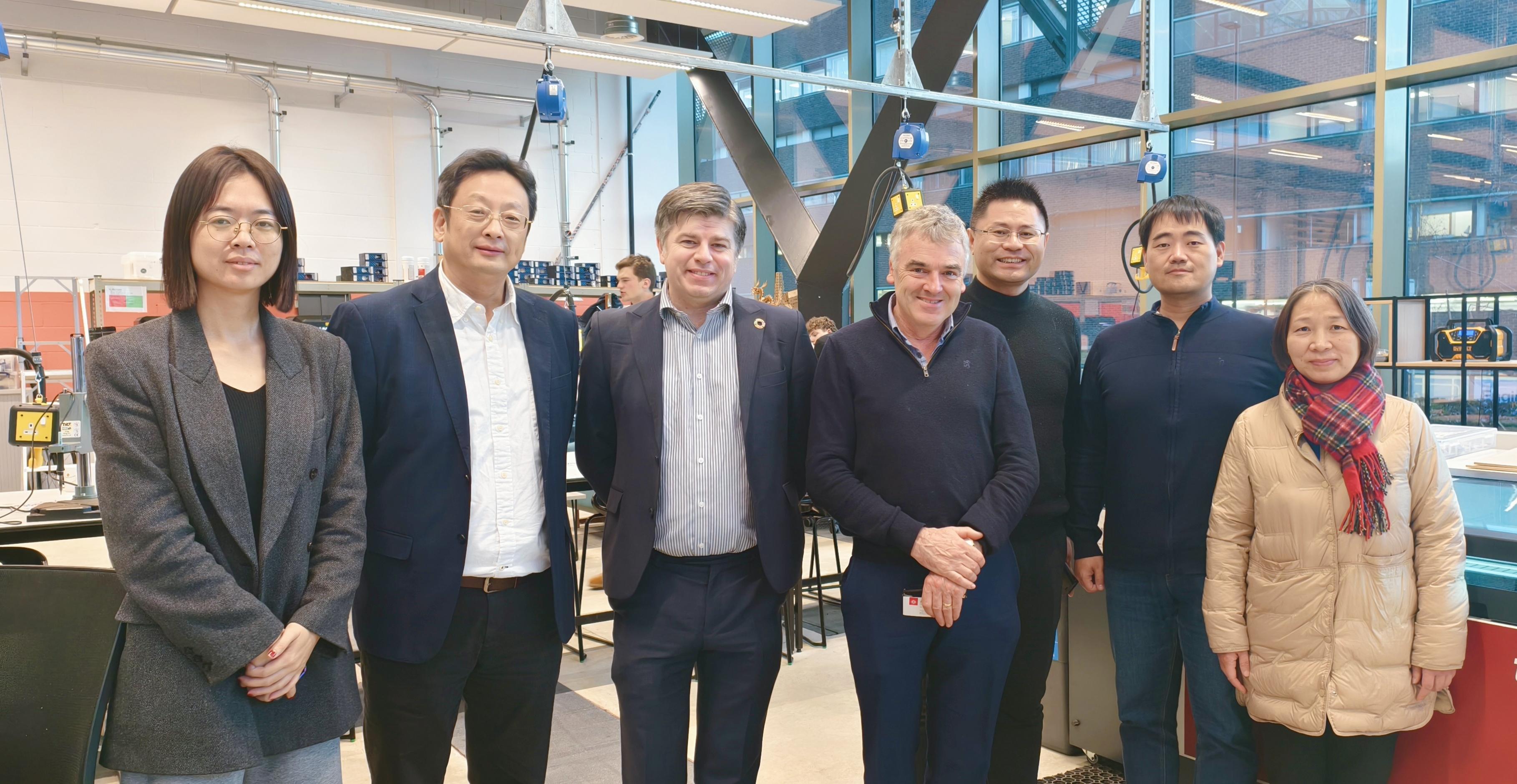 访问期间,代表团与纽卡斯尔大学多个学科团队进行专题会谈交流——与教育、传播与语言科学学院院长Julie Morris及团队开展教育学科专题交流,双方在言语与语言、特殊教育方面探讨合作机会;与科研战略主管Sarah Whalley及团队围绕卓越战略性科研管理进行交流,代表团学习了纽卡斯尔大学研究卓越中心建设和科研人员支持计划,讨论了双方科研管理人员互访的计划;与医学科学学部研究与创新副院长Simi Ali、学部研究职业生涯发展主任Jonathan Higgins探讨在医学及其相关领域的联合研究与合作办学的机会;与英国皇家工程院院士、科学农业与工程学部工程学院研究与创新主任Richard Dawson等交流。之后,在Richard Dawson与英国皇家工程院院士Barrie Mecrow的陪同下,代表团实地考察了工程学院新近投入使用的教研空间与设施配备,了解纽卡斯尔大学工程领域教学和科研的软硬件设计理念,双方还探讨了地理空间科学领域的合作事宜。