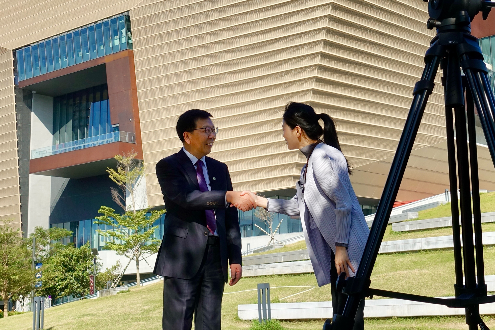 钱旭红接受香港凤凰卫视“大学校长说”专访拍摄现场