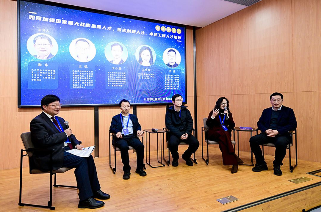 下午的三场圆桌论坛,分别以“如何加强需求导向的基础学科、新兴学科、交叉学科建设”“如何加强国家重大战略急需人才、拔尖创新人才、卓越工程人才培养”“如何建立协同育人发展机制,实现高校与产业的人才供需精准对接”为主题。论坛主持人和嘉宾就主题展开观点讲述,与会社员围绕三个主题与嘉宾们进行了深度对话和热烈探讨。九三学社中央教育文化专门委员会副秘书长、社北京市委教育专门委员会副主任、北京师范大学教育学部副部长余清臣,张华,九三学社陕西省委常委、西北工业大学计算机学院院长尚学群,分别主持三场主题圆桌论坛。