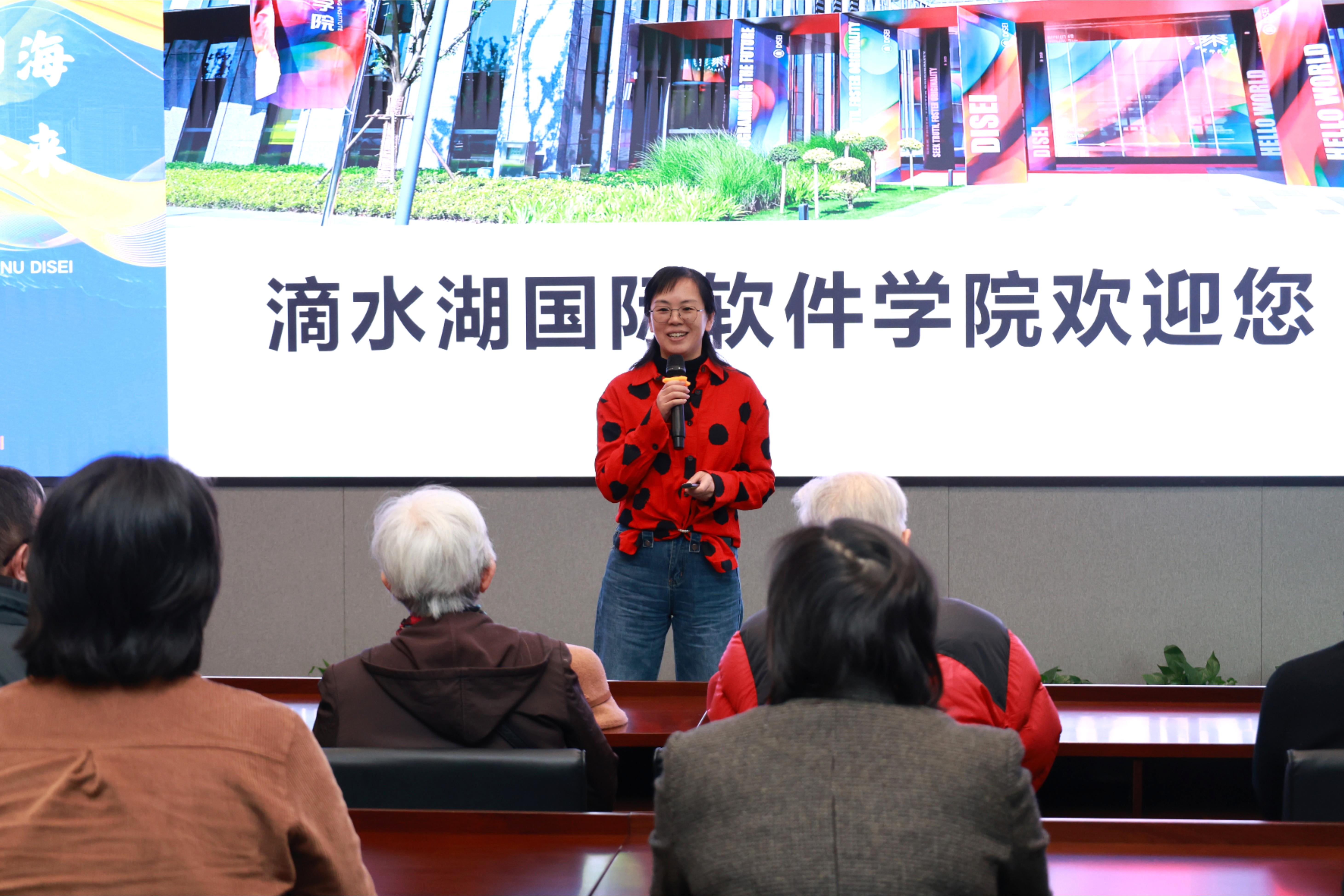 杨艳琴热烈欢迎老领导们的到访,并向他们详细介绍了滴水湖国际软件学院的建设规划和进展,以及改革中科研和育人等方面的新问题、新举措、新方案。围绕老同志们关心关切的“教育强国”建设主题,她进一步汇报了学习和实践体会。她表示,建成教育强国是民族复兴伟业的先导任务、坚实基础和战略支撑,围绕“教育强国,师大何为”的时代命题,学校各学科在高等教育新一轮转型发展的战略机遇下要精准对接、科学谋划,先立后破、主动施为。滴水湖国际软件学院将抓住机遇,利用好临港新片区提供的制度优势、产业资源,深度探索产教融合,创新卓越软件人才培养模式,为学校对接国家和地方战略发展需求贡献软件人的力量。