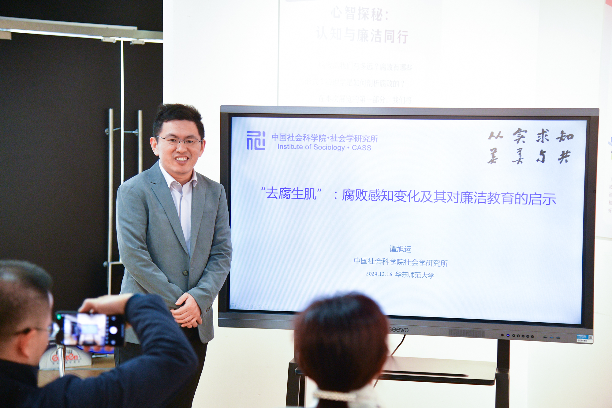 开幕式后,中国社会科学院社会学研究所社会心理学研究室副主任谭旭运作“‘去腐生肌’:腐败感知变化及其对廉洁教育的启示”专题报告,心理与认知科学学院副教授胡杨作“‘不想腐’的心理与认知机制解析”专题报告。两位老师从不同的学术视角带领观众进一步探讨腐败背后的心理认知。