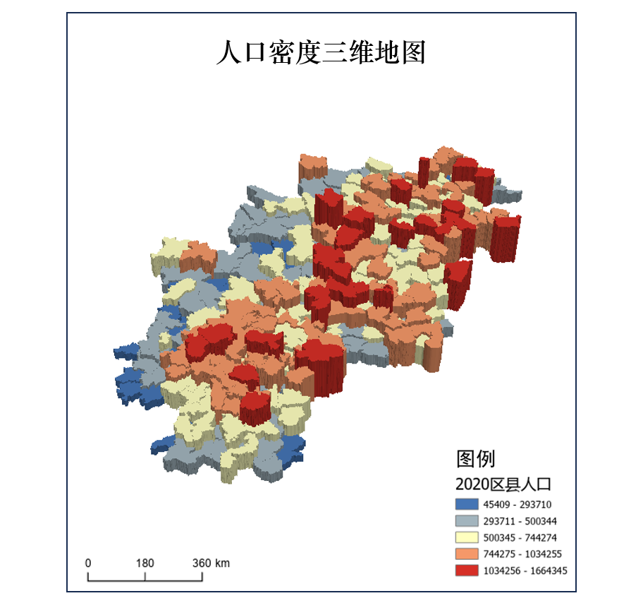 通过投影与拓扑检查确保数据准确性,结合空间连接关联人口数据,识别人口增长特征及热点区域。队员们进一步统计并制作了高精度人口分布图和老年人口栅格图。最终,团队构建了人口密度三维地图及综合分布图,清晰展现人口分布与变化规律。成果不仅揭示了研究区的人口时空特征,也为优化人口政策提供了科学支持。