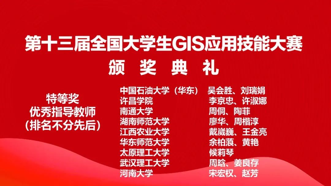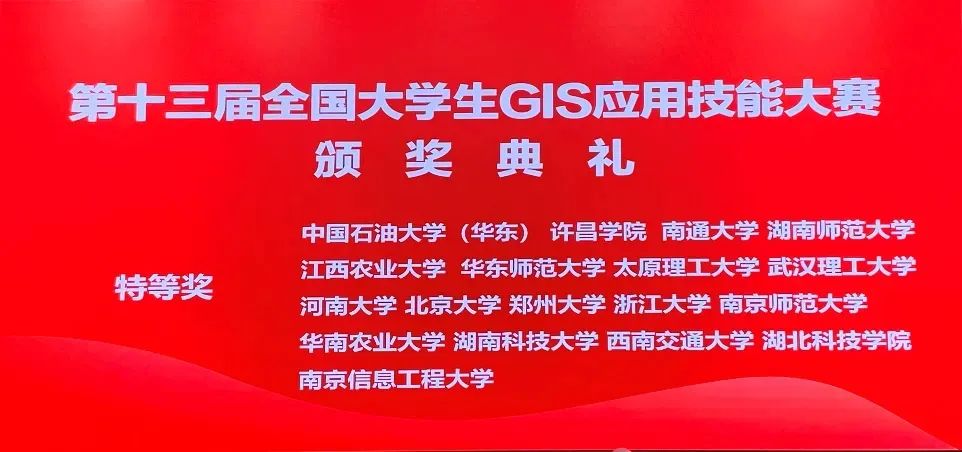 永利皇宫登录官网GIS大赛指导团队积极组织校内宣传及选拔工作,并确定地理科学学院2022级地理科学专业(拔尖班)及地理信息科学专业(GIS班)本科生石佳、胡潇洋、韩承臻、潘若彤作为永利皇宫登录官网代表队的参赛队员。经过激烈角逐,永利皇宫登录官网连续第五年斩获特等奖,余柏蒗、黄艳获优秀指导教师奖。