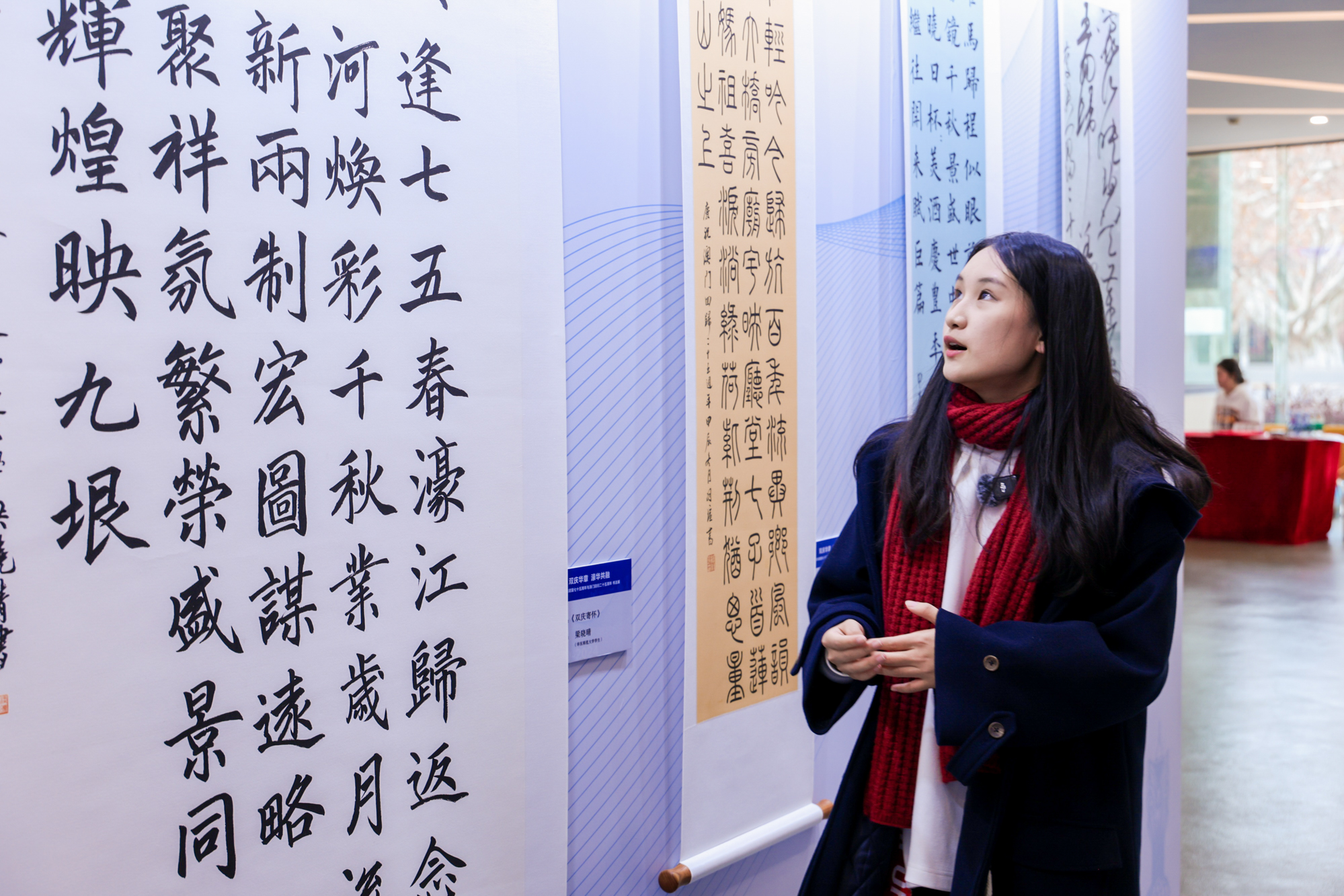 梁晓晴来自澳门,她是华东师大2023级汉语言文学专业的学生,同时,她也是学校书法协会的一员,她为本次展览献上了一枚自己亲笔撰写的书法作品《双庆寄怀》。“漫步于成果展的各个展区,我仿佛置身于一部生动的教育合作编年史册之中。从一幅幅珍贵的历史照片、一份份详实的合作文件,到一系列精心展示的科研成果、学生作品,无不见证着两地教育合作从萌芽到蓬勃发展的坚实足迹。看到上世纪80年代就已经开始的学术交流活动,我深感震撼。那些前辈们为我们铺就了如此珍贵的交流之路,让我们今天能够享受到如此丰富的教育资源共享成果。”梁晓晴说。