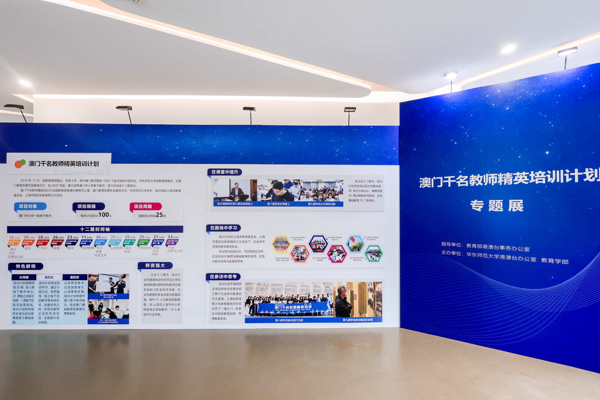 2019年12月,国家教育部宣布未来十年将向澳门教师提供1000个赴内地培训的机会。作为教育部唯一委托单位,华东师大与澳门教育及青年发展局合作,自2020年起开展培训,着力培养澳门中小学骨干教师。项目依托华东师大的教师教育学科优势,提升澳门精英教师的能力,推动澳门基础教育的发展。截至2024年12月,已培训12期339人。澳门千名教师精英培训计划专题展则重点回顾了这项培训计划的特色成果。