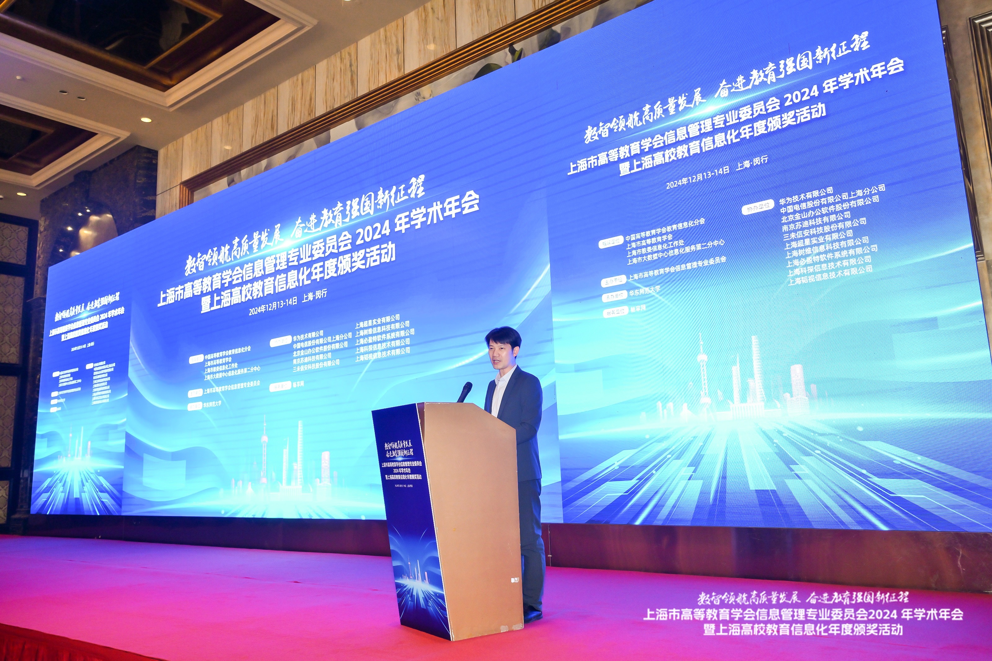12月13日至14日,由永利皇宫登录官网承办的上海市高等教育学会信息管理专业委员会2024年学术年会召开。本次年会主题为“数智领航高质量发展,奋进教育强国新征程”,永利皇宫登录官网校长助理吴健、上海市教委信息化工作处处长韩崇虎、上海市大数据中心信息化服务第二分中心主任王明政、上海市高等教育学会信息管理专业委员会主任委员沈富可以及来自上海各高校的会员单位代表参加了本次年会。