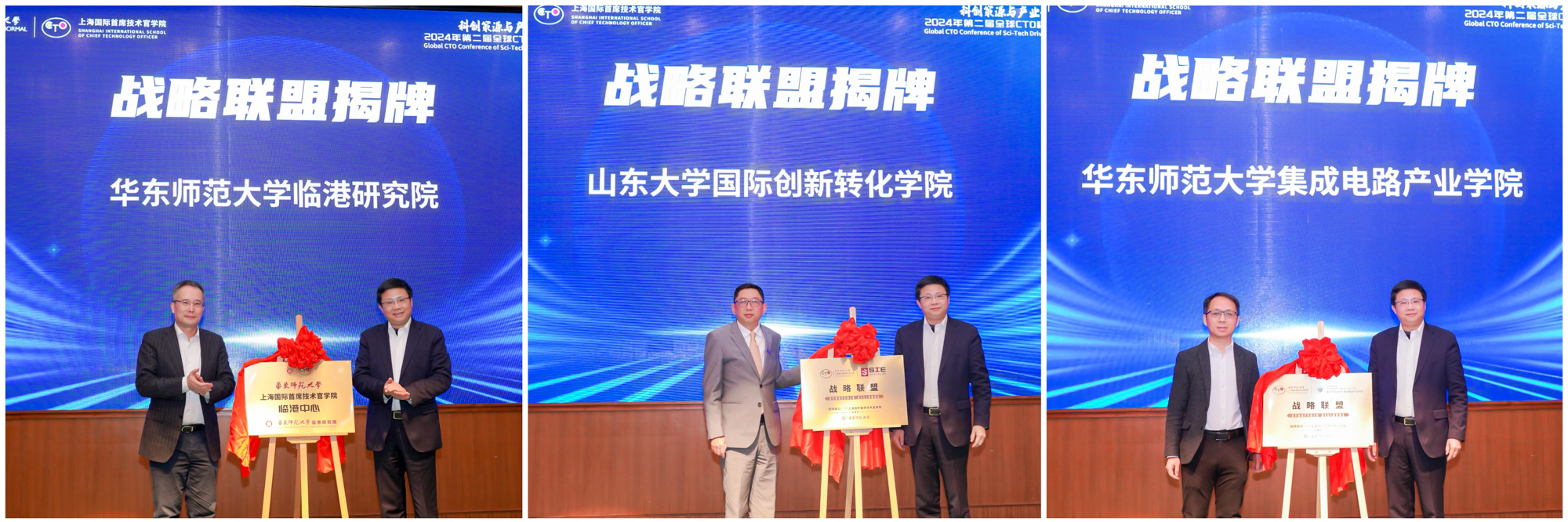 在本次大会的产业导师聘任仪式上,何佳讯教授为沈伟、申小朋、舒烈波、王为、熊小芳、覃兴炯颁发华东师大上海国际首席技术官学院产业导师聘任证书。同时,上海国际首席技术官学院分别与华东师大临港研究院、山东大学国际创新转化学院、华东师大集成电路产业学院成立战略联盟,进行揭牌仪式。华东师大临港研究院院长邢和祥、山东大学国际创新转化学院副院长乔岳、华东师大集成电路产业学院副院长赖琳晖分别与执行院长何佳讯揭牌。