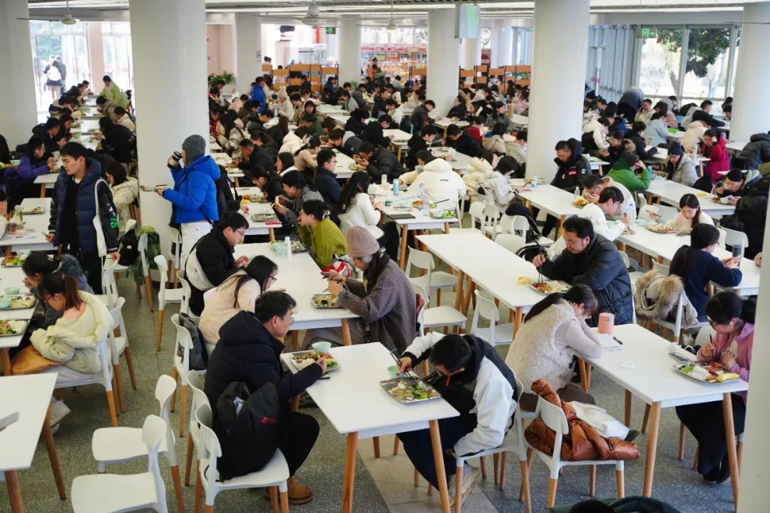学校开放多处餐厅,订制营养套餐,备上暖暖姜汤热饮,启动“暖心护考”模式。