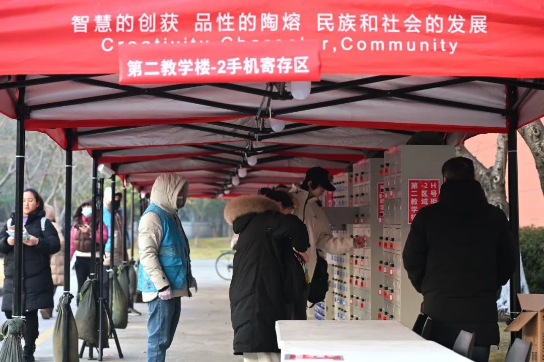 考点配备专业服务力量,启用智能安检门安检,手机集中放置,5G信号屏蔽,做到“制度先行、技术到位、保障有力”。