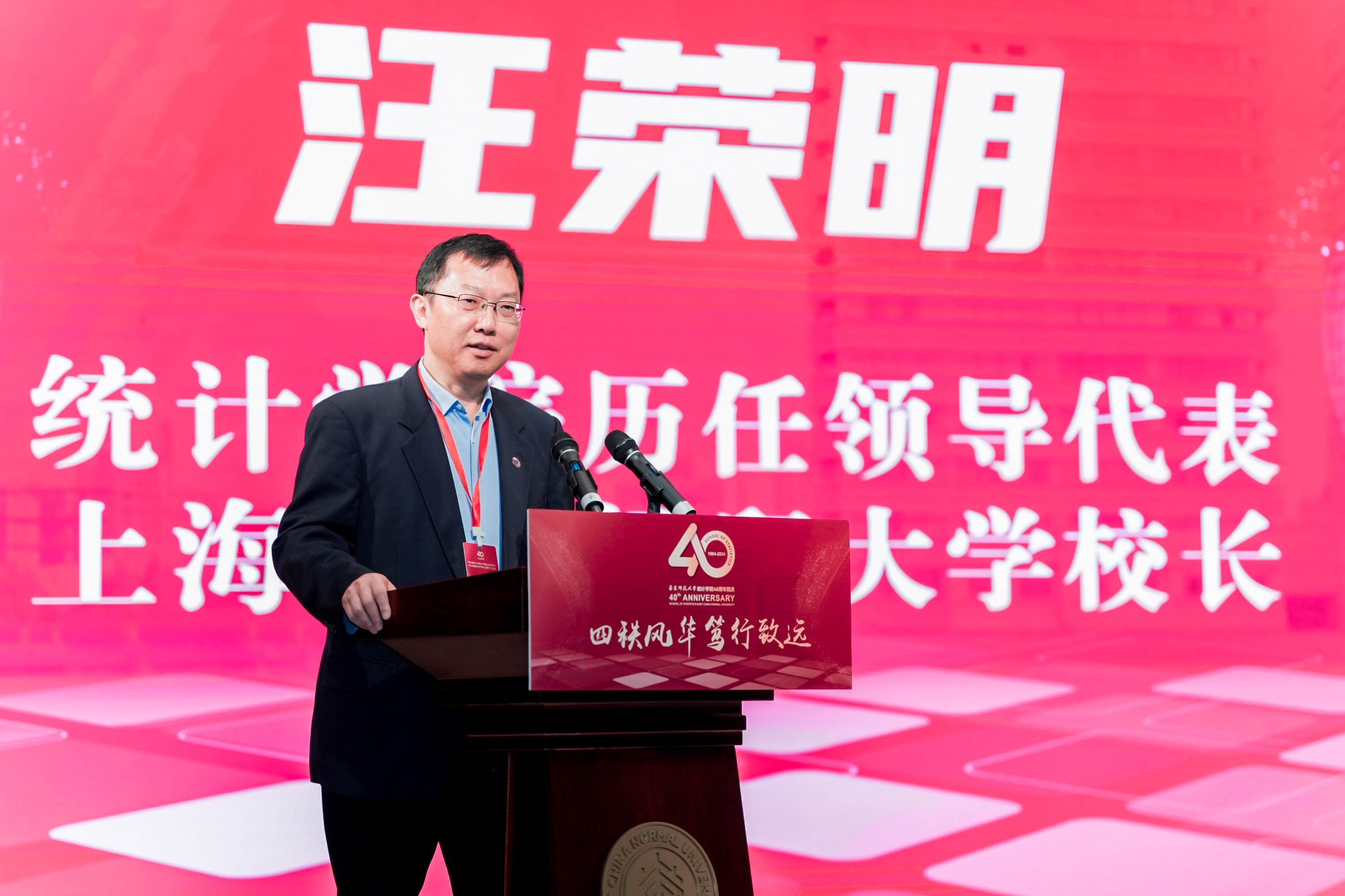 ▲统计学院历任领导代表、上海对外经贸大学校长汪荣明致辞