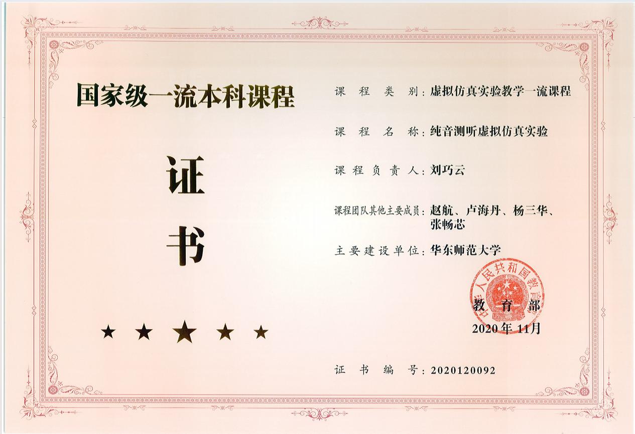 《纯音测听虚拟仿真实验》课程入选首批国家级一流本科课程