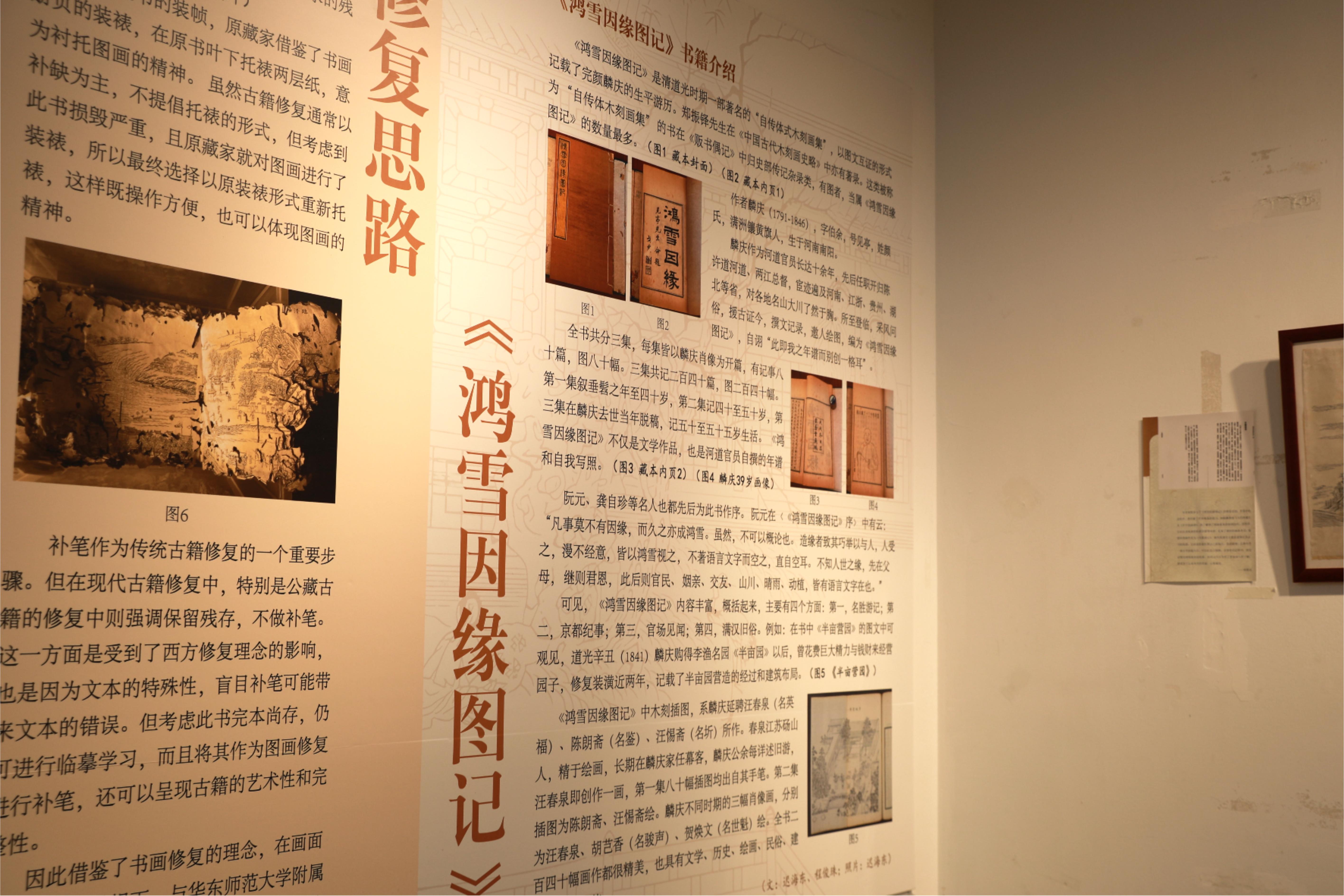 本次展览介绍了《鸿雪因缘图记》与古籍修复的知识和技能,同时通过社团课程设计与实施、修复工具、修复过程、修复成果的展示以及学生的立体视觉笔记与作品语音导览,多模态呈现了修复《鸿雪因缘图记》的艺术价值,深刻诠释了美术教育在传承中华优秀传统文化中的独特作用。