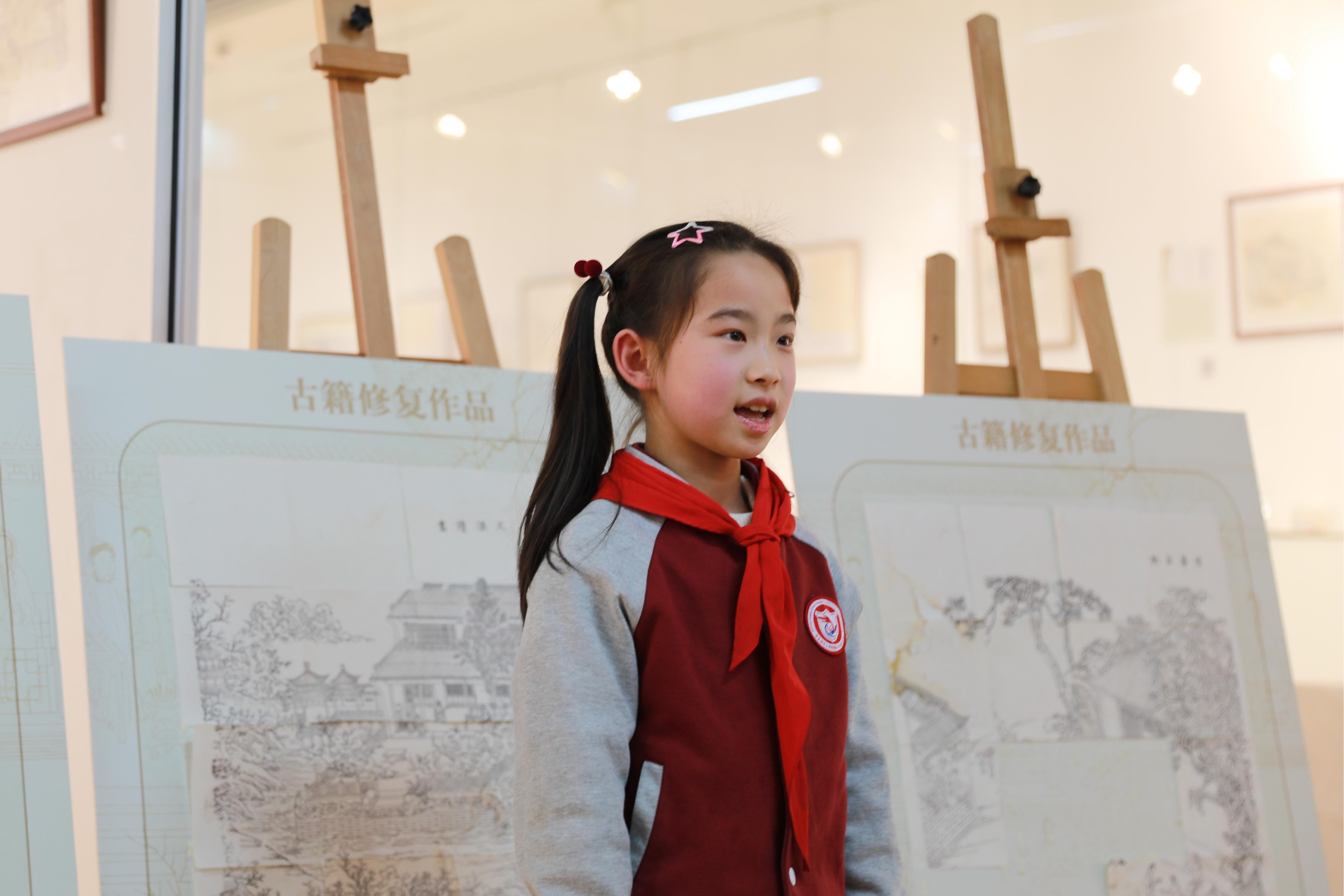 永利皇宫登录官网附属永德小学江奕楠同学分享了自己的感受,“我修复了这幅画的很小的一部分。在这个过程中,我学到了线条要有粗细变化……我觉得这幅画很好看,但修起来却很难,我回家后还要多多了解。”