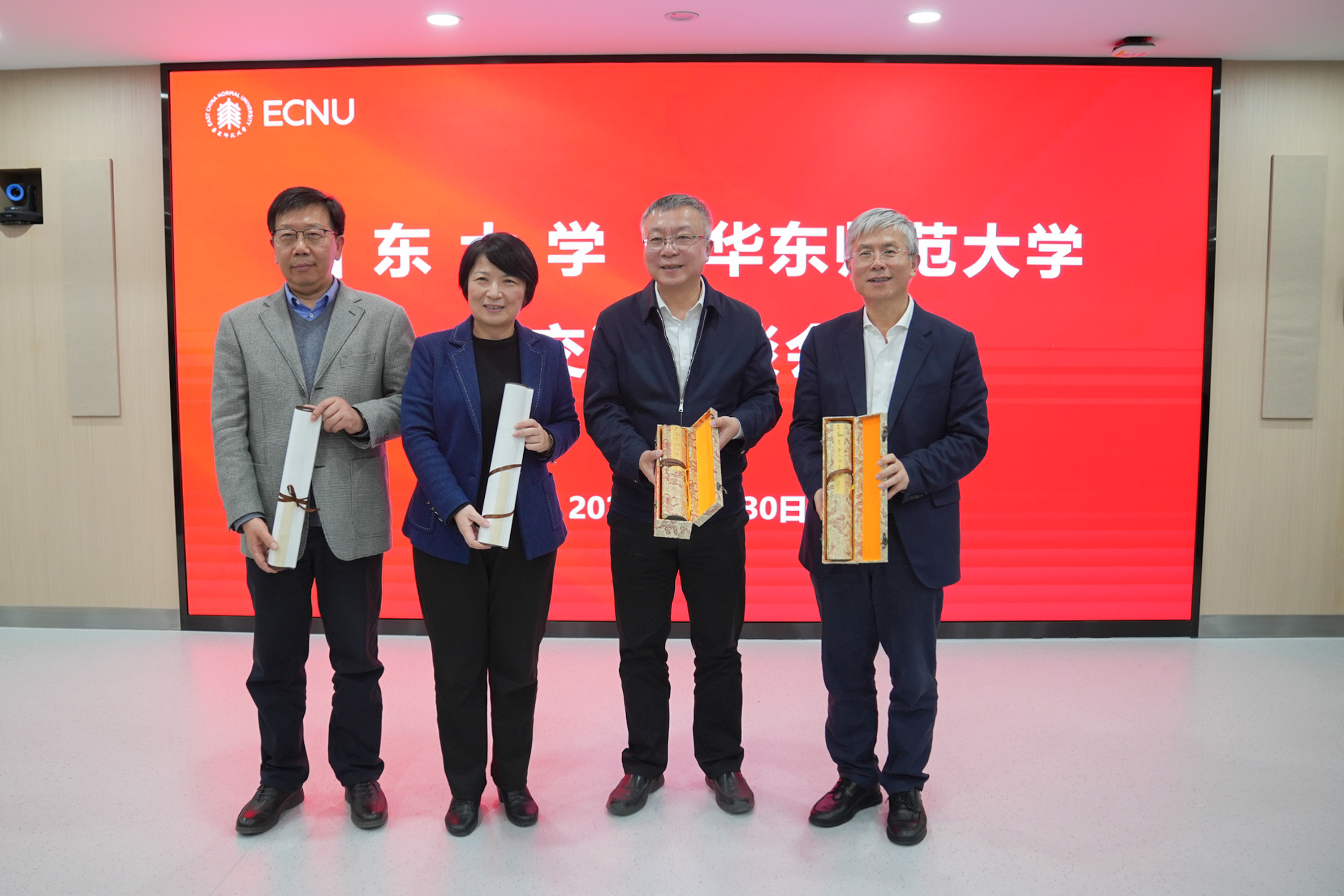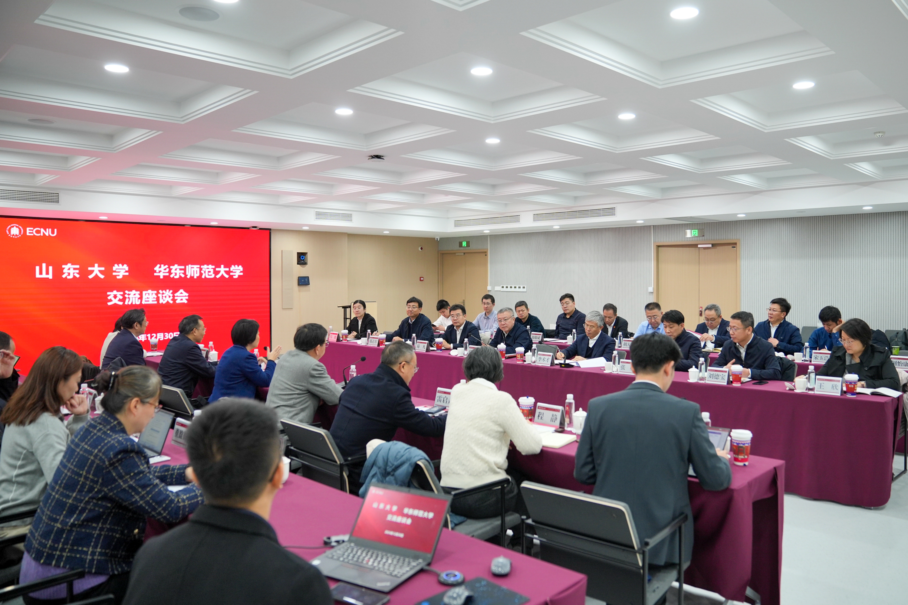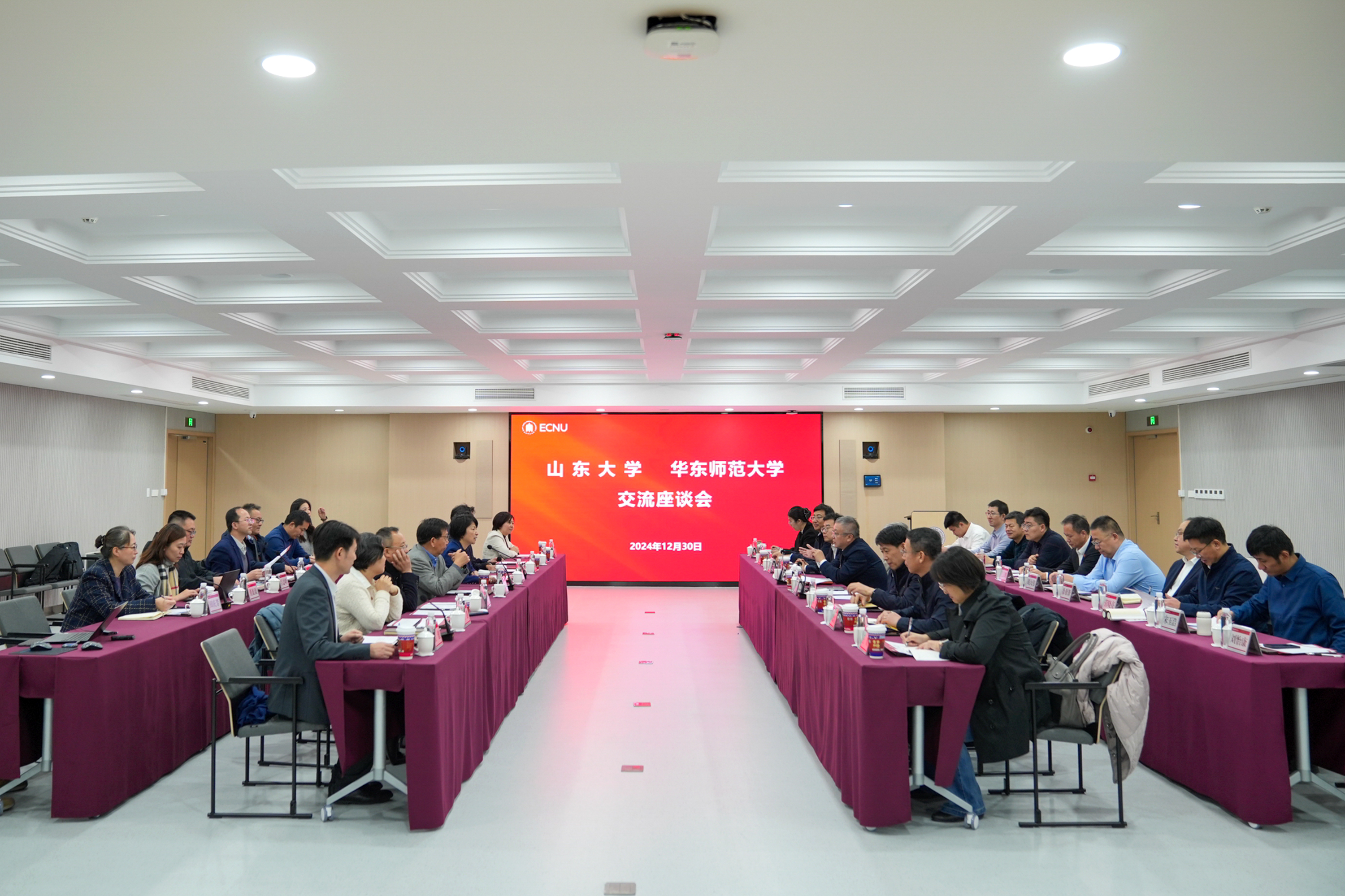 12月30日,山东大学党委书记任友群、校长李术才一行来到永利皇宫登录官网调研,华东师大党委书记梅兵、校长钱旭红会见了任友群、李术才一行。会议由梅兵主持。