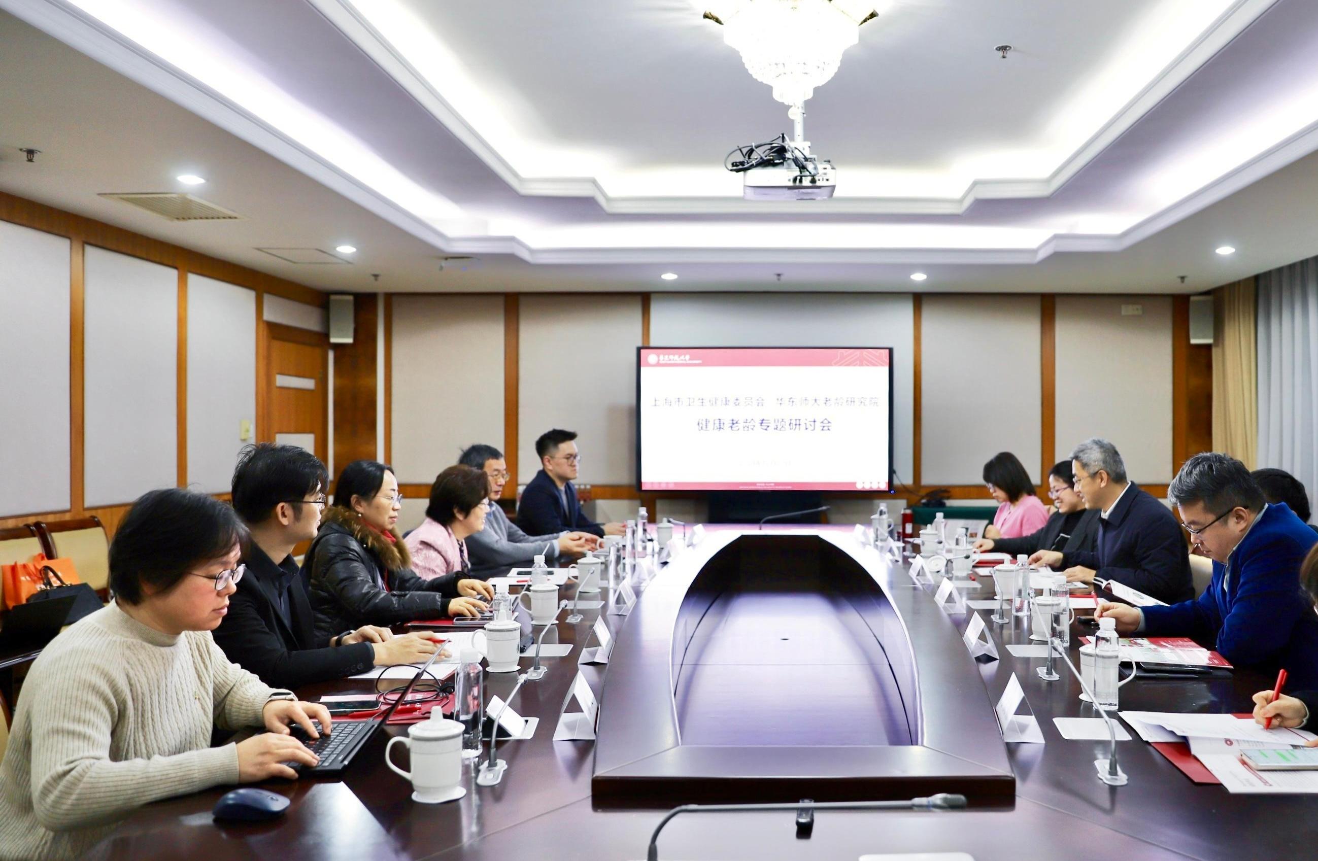 12月27日下午,上海市卫生健康委员会副主任陆韬宏,人口家庭处原处长、二级巡视员樊华,老龄健康处处长钱文卉,人口家庭处副处长(主持工作)崔元起、副处长胡娟等一行受邀到访华东师大老龄研究院,围绕健康老龄进行专题研讨。研讨会由老龄研究院执行院长吴瑞君主持。