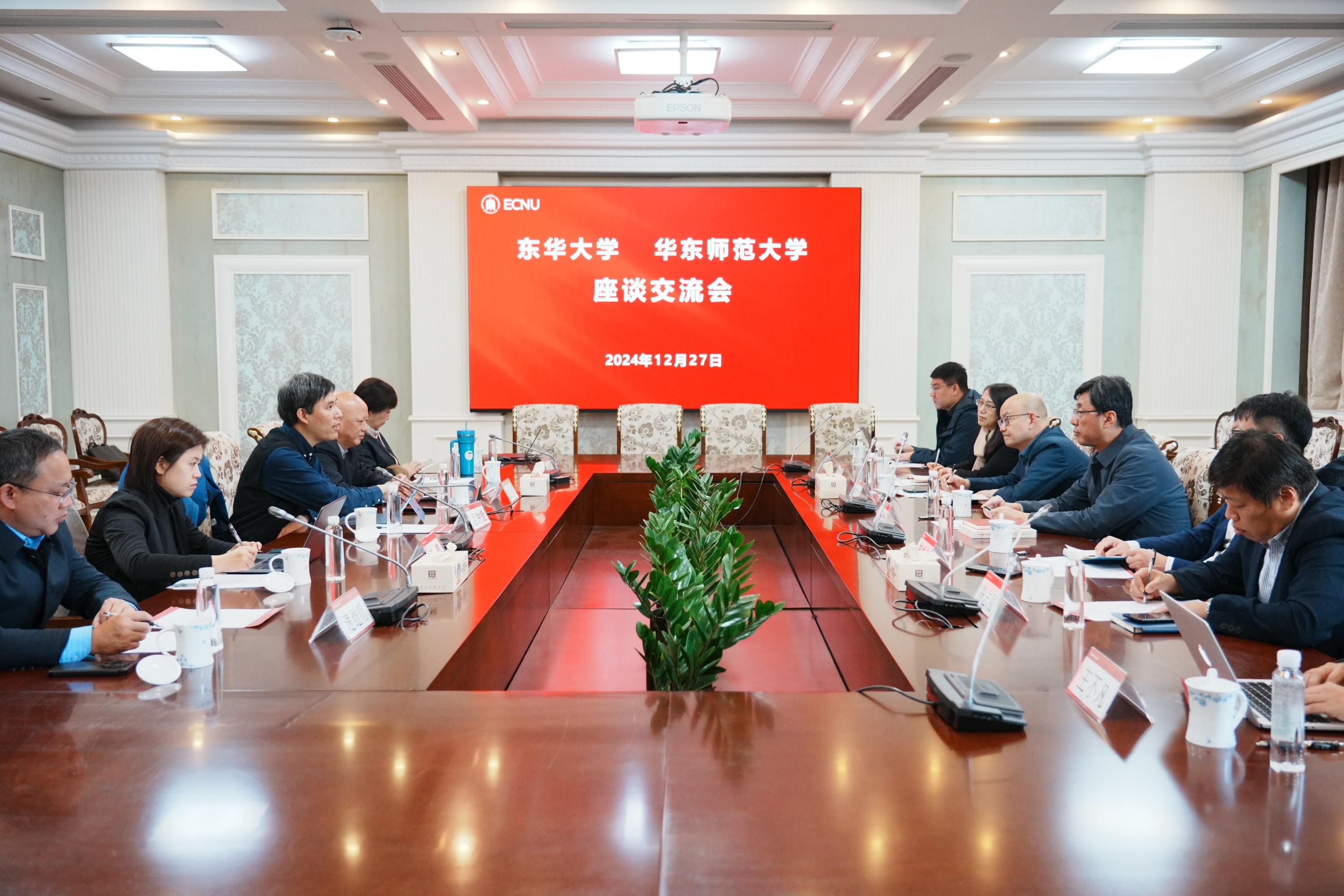 12月27日,东华大学党委书记刘承功、党委副书记李成龙一行来校访问调研。座谈交流会由华东师大党委副书记孟钟捷主持。党委宣传部、马克思主义学院等相关单位负责人参加会议。