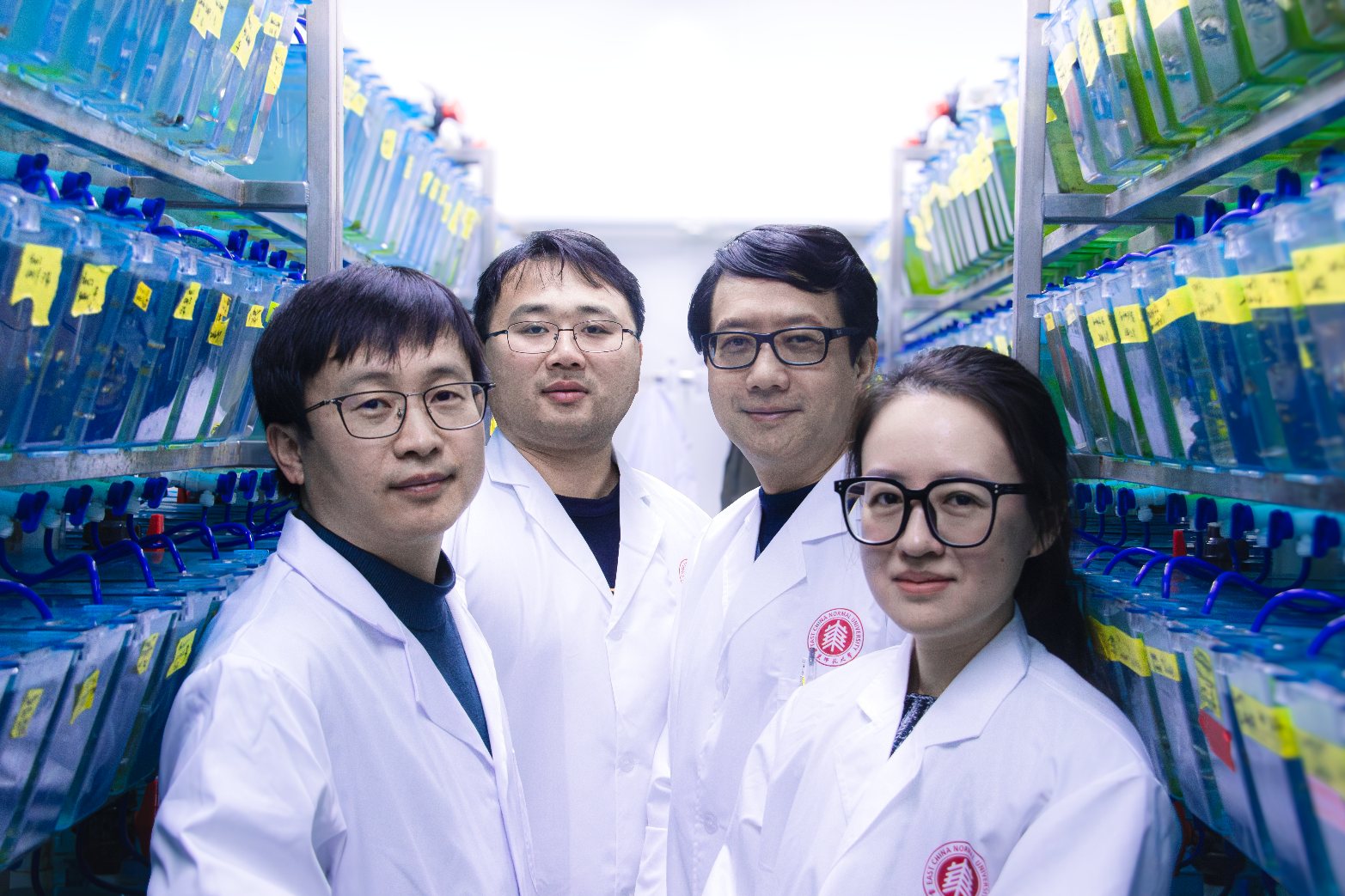 永利皇宫登录官网生命科学学院钟涛教授团队(左起李东亮、高邦君、钟涛、佘培露)