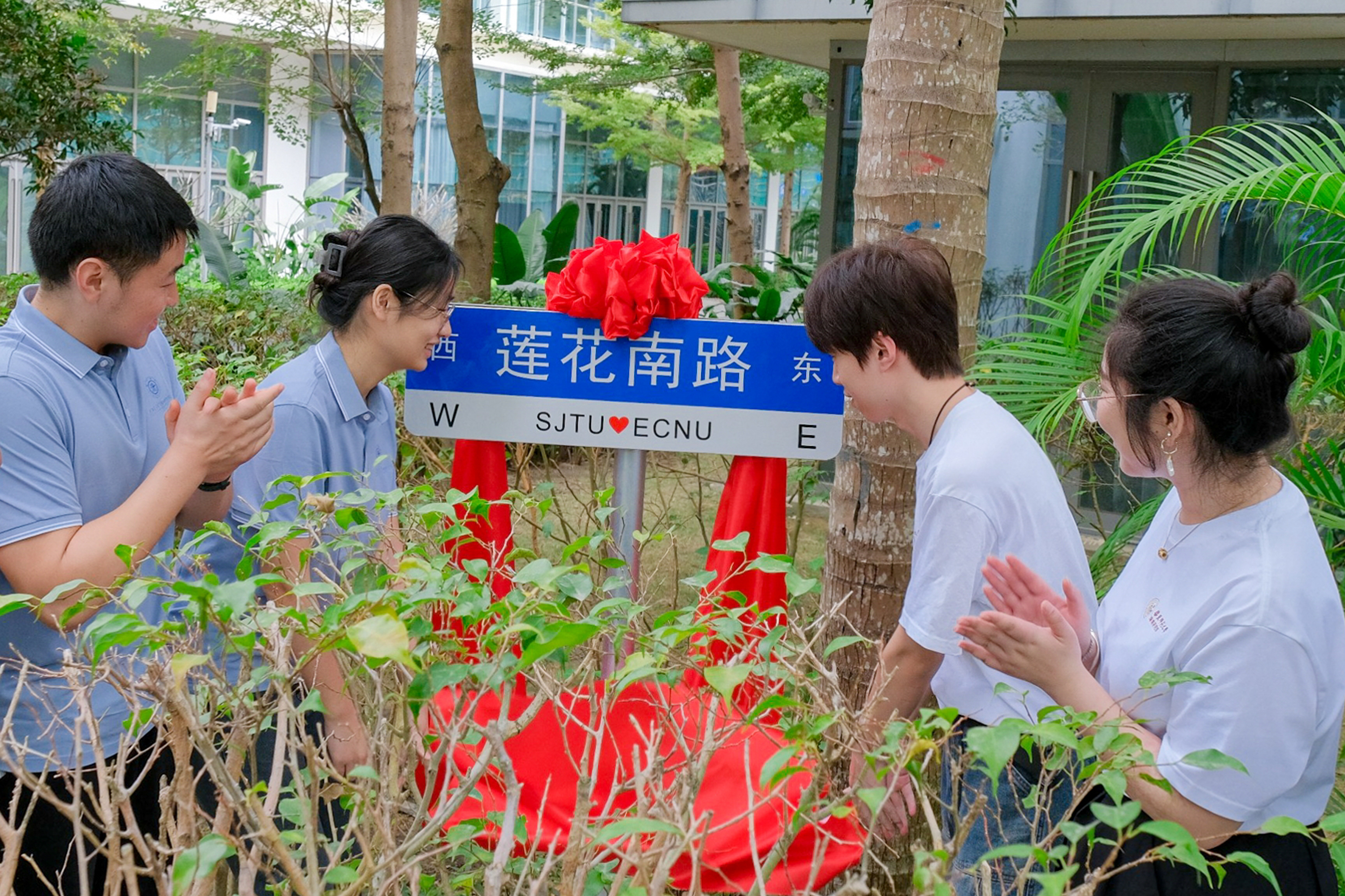 两校师生共同为“莲花南路”路牌揭牌