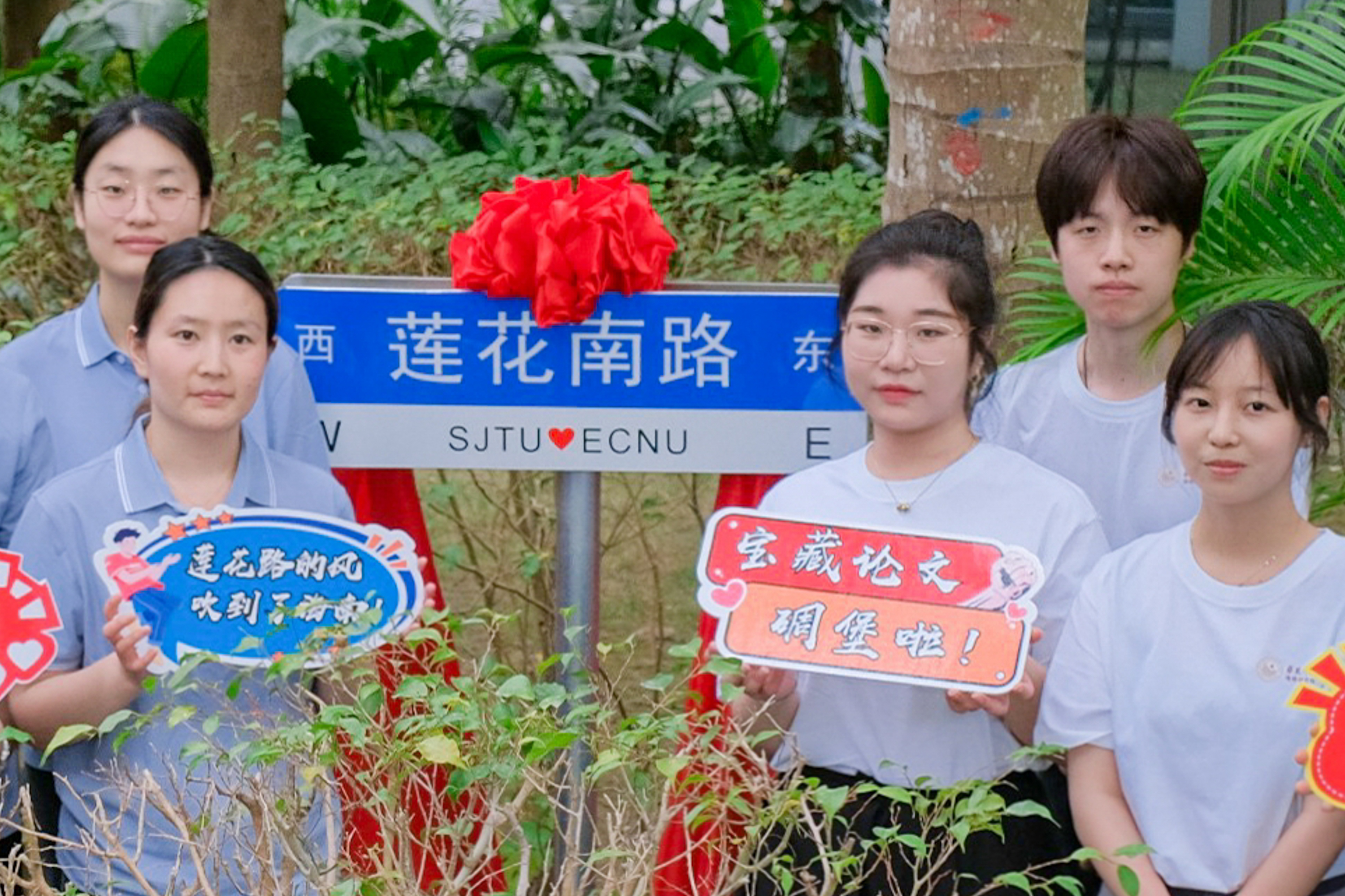 在上海闵行,有这样一条路——莲花南路,一侧是华东师大,一侧是上海交大。两校门对门,手牵手,共同谱写建设教育强国的新时代篇章。从思源湖到樱桃河,我们的友情是莲花南路的相对相望。从上海到海南,跨越千山万水,科创的风吹到了天涯,两校的比邻之谊,延展到了海角。