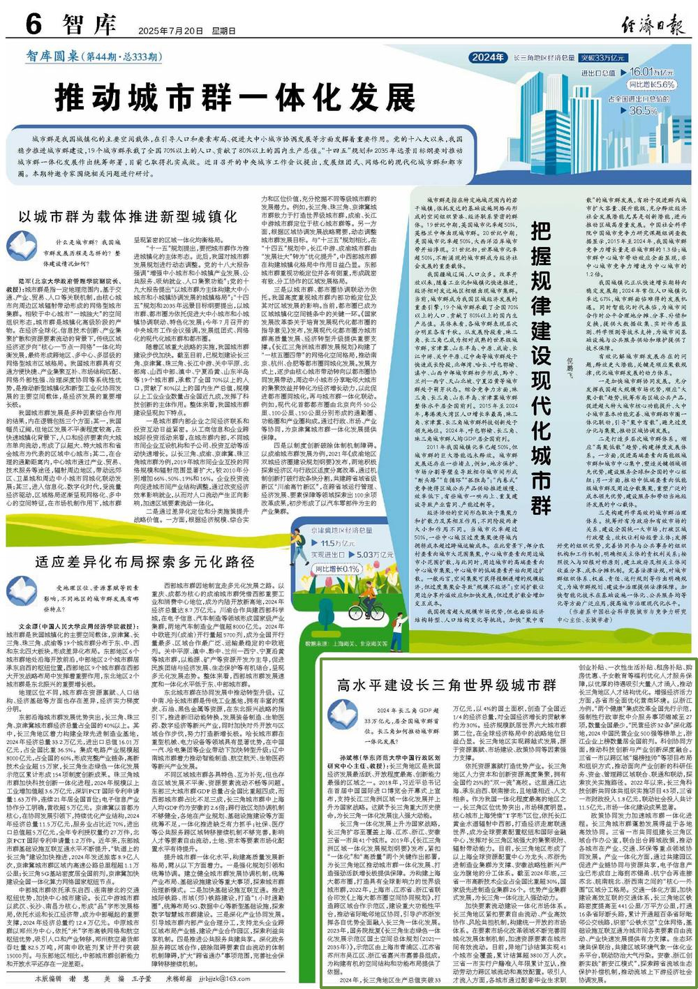13|孙斌栋教授在《经济日报》发文,探讨如何高水平建设长三角世界级城市群