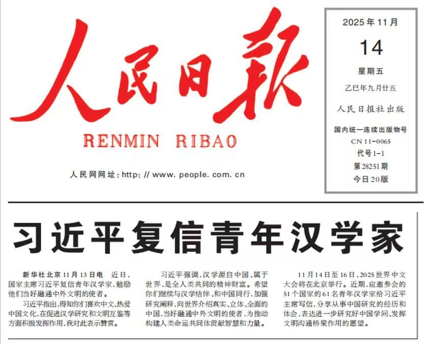 11月14日至16日,2025世界中文大会在北京举行。应邀参会的51个国家的61名青年汉学家给习近平主席写信,分享从事中国研究的经历和体会,表达进一步研究好中国学问、发挥文明沟通桥梁作用的愿望。这其中有多位来自永利皇宫登录官网的师生校友。