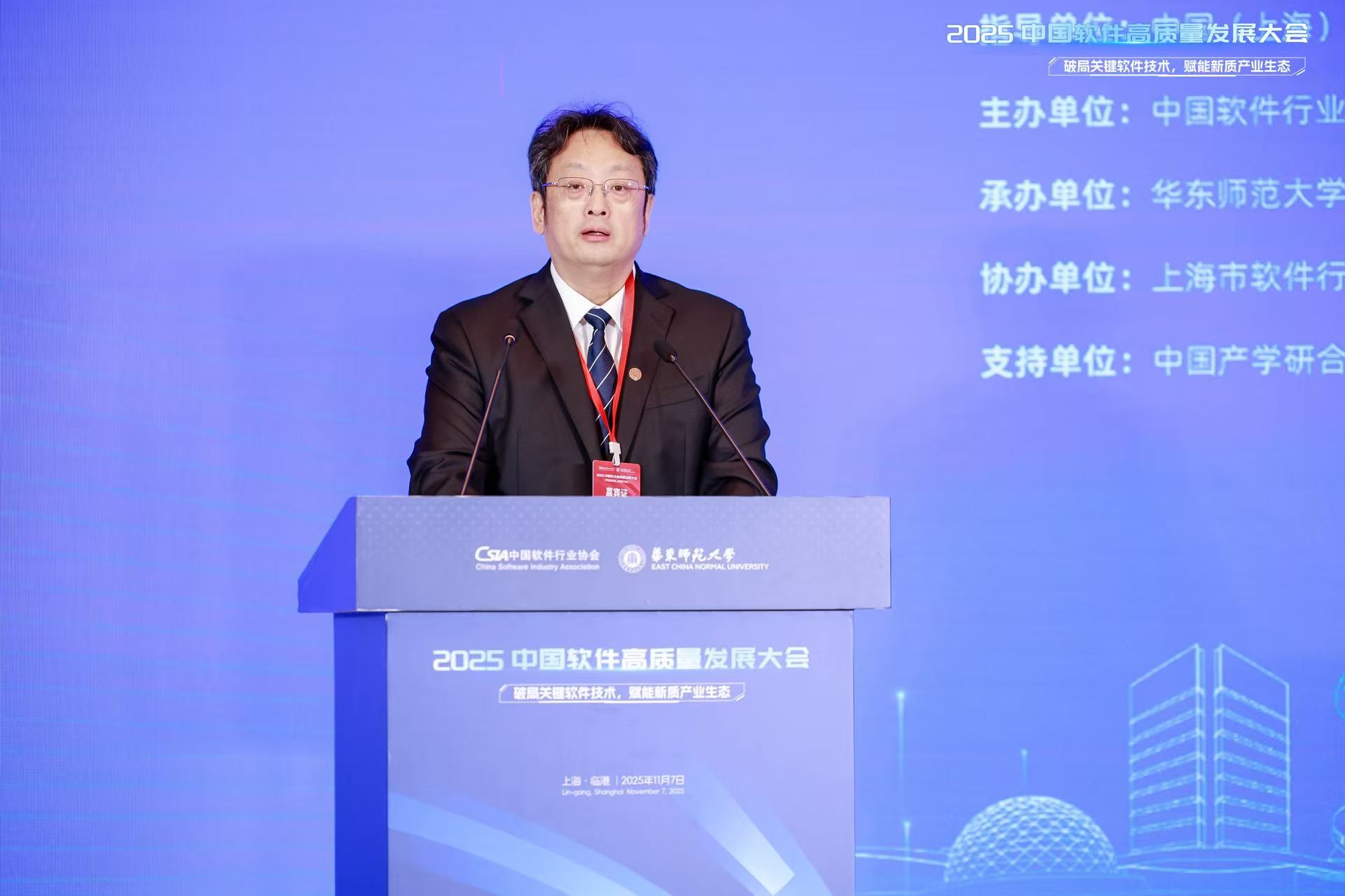 11月7日,由中国(上海)自由贸易试验区临港新片区管理委员会指导,中国软件行业协会、华东师大主办的2025中国软件高质量发展大会在临港新片区举办。本次大会以“破局关键软件技术,赋能新质产业生态”为主题,吸引了来自全国各地的高校、科研院所、行业龙头企业及媒体记者等400余人参会。