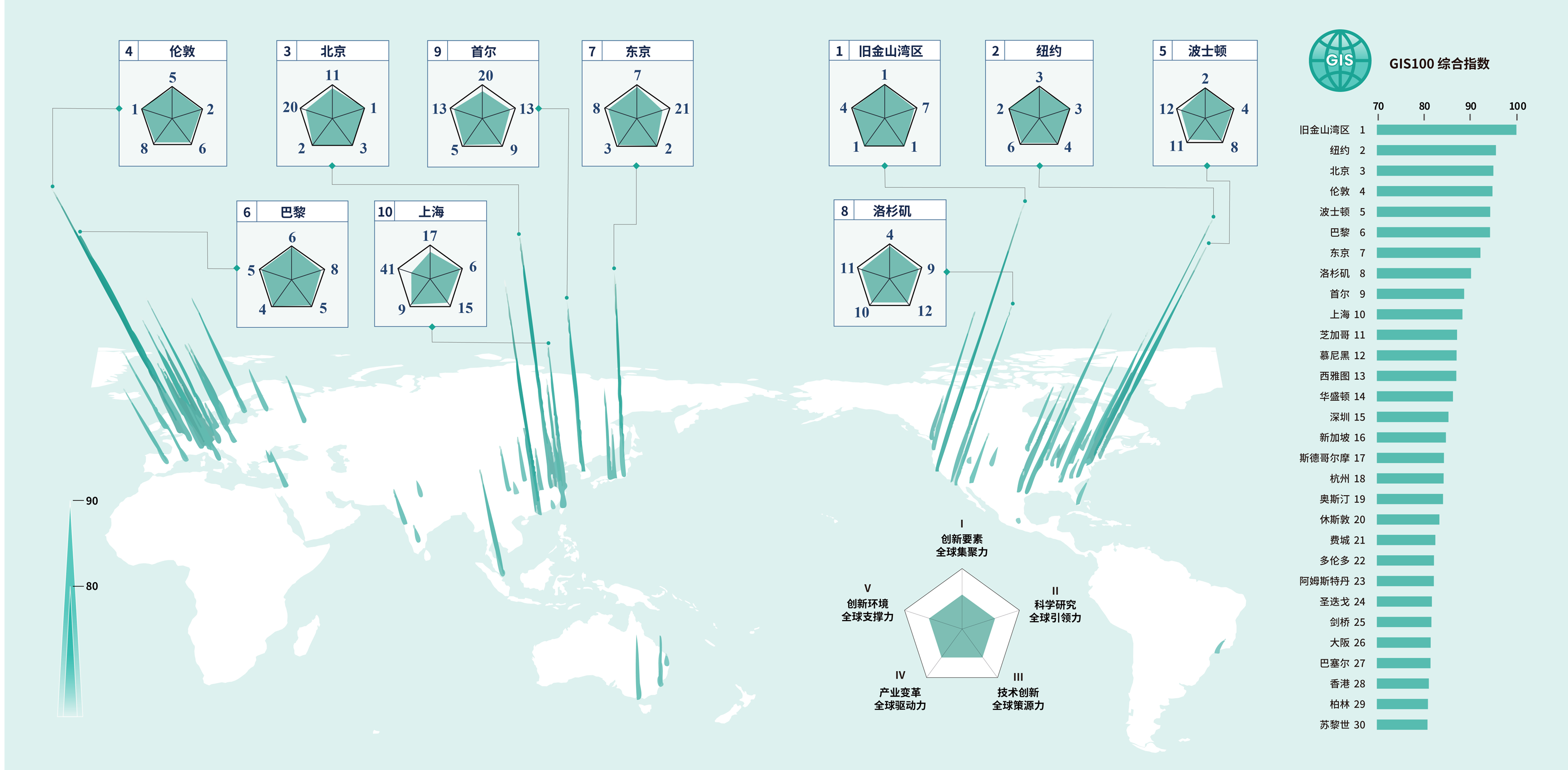 综合评估显示,2025年全球科技创新中心前30强依次为:旧金山湾区、纽约、北京、伦敦、波士顿、巴黎、东京、洛杉矶、首尔、上海、芝加哥、慕尼黑、西雅图、华盛顿、深圳、新加坡、斯德哥尔摩、杭州、奥斯汀、休斯敦、费城、多伦多、阿姆斯特丹、圣迭戈、剑桥、大阪、巴塞尔、香港、柏林、苏黎世。