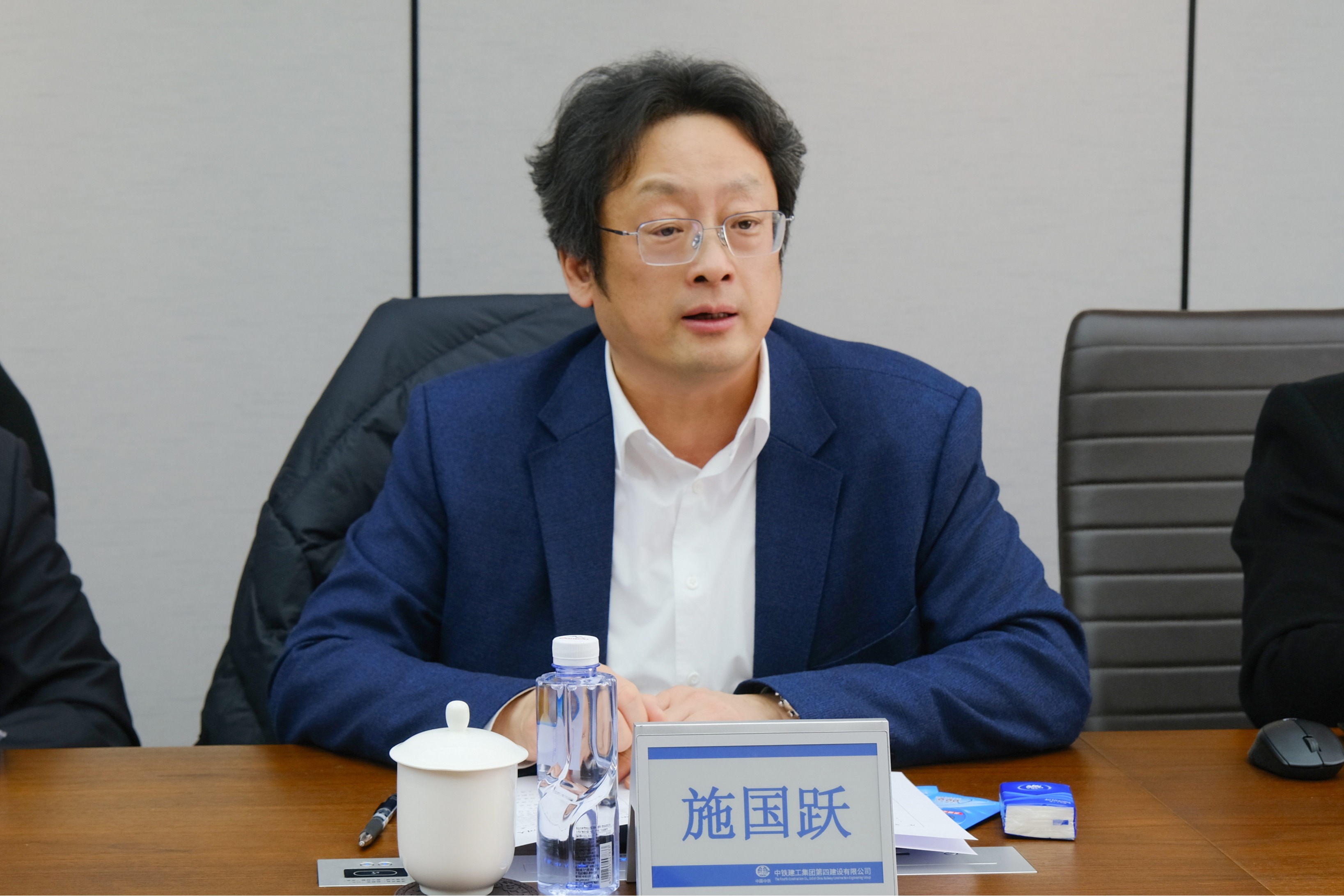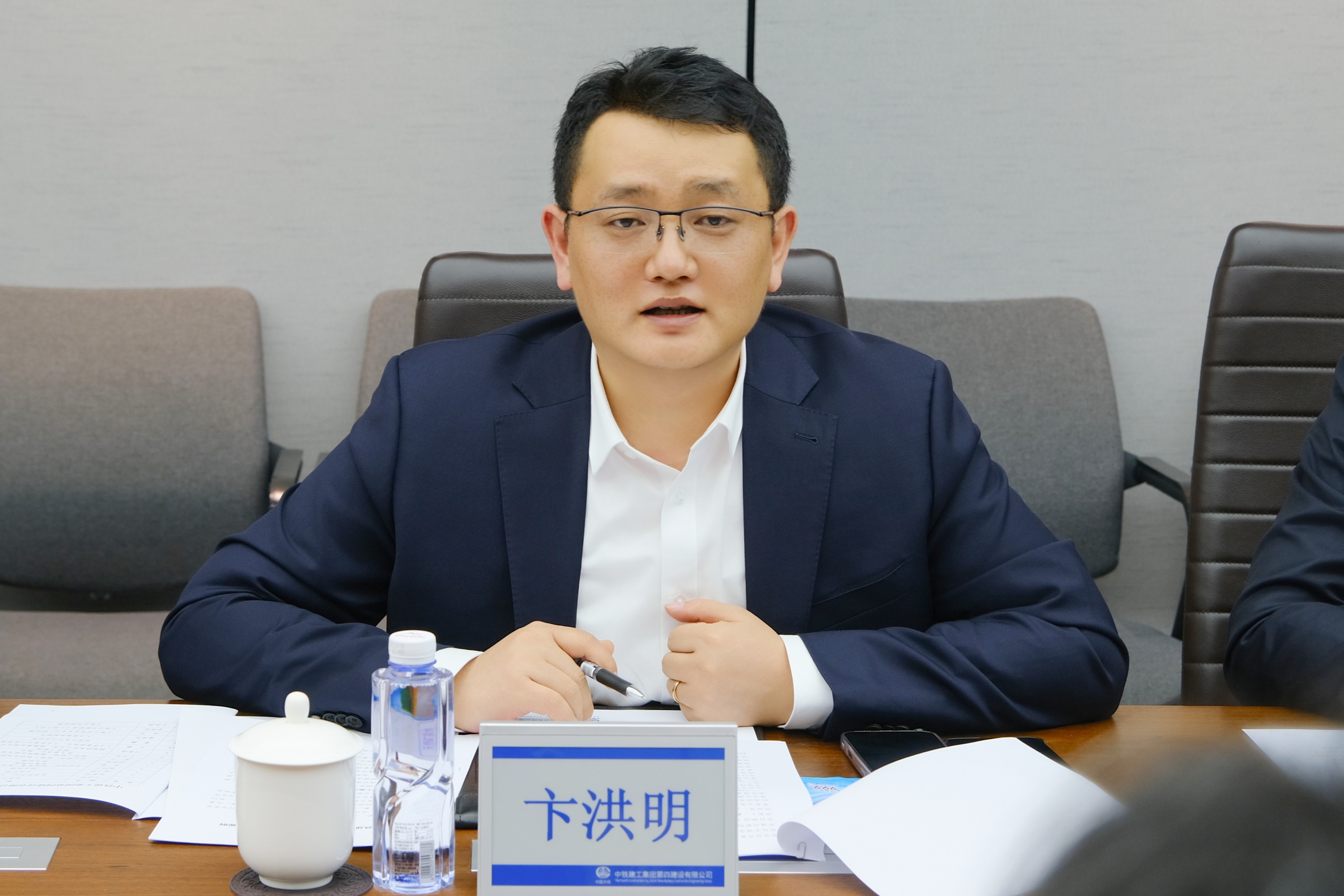 卞洪明代表公司对施国跃一行的到来表示热烈欢迎,并详细介绍了公司的发展历程与业务布局。他指出,作为中国中铁旗下骨干企业,中铁建工始终坚持“以诚信、智慧、科技、管理铸就更高质量和更富情感的建筑精品”的质量方针,在高校建设、铁路站房、公共建筑等领域打造了一批标志性工程。卞洪明表示,华东师大作为国家“双一流”建设高校,在人才培养、科学研究等方面享有盛誉。希望双方能以此次战略合作为崭新起点,充分整合企业在重大工程建设实践和产业应用场景方面的优势,以及高校在前沿基础研究、多学科学术资源和高端人才储备方面的特长,持续拓展合作广度与深度,构建产学研用紧密结合的创新生态,携手为解决行业关键技术难题、推动建筑产业转型升级与国家经济社会高质量发展贡献智慧与力量。