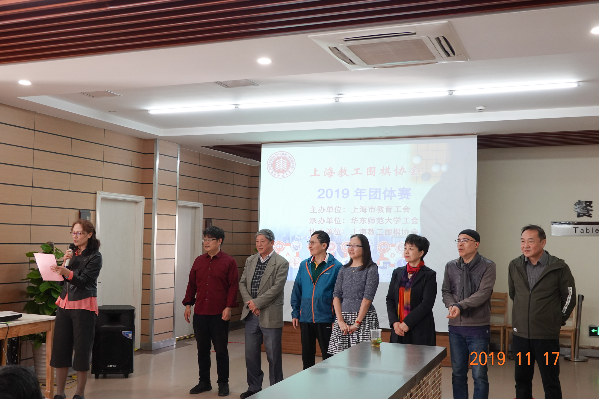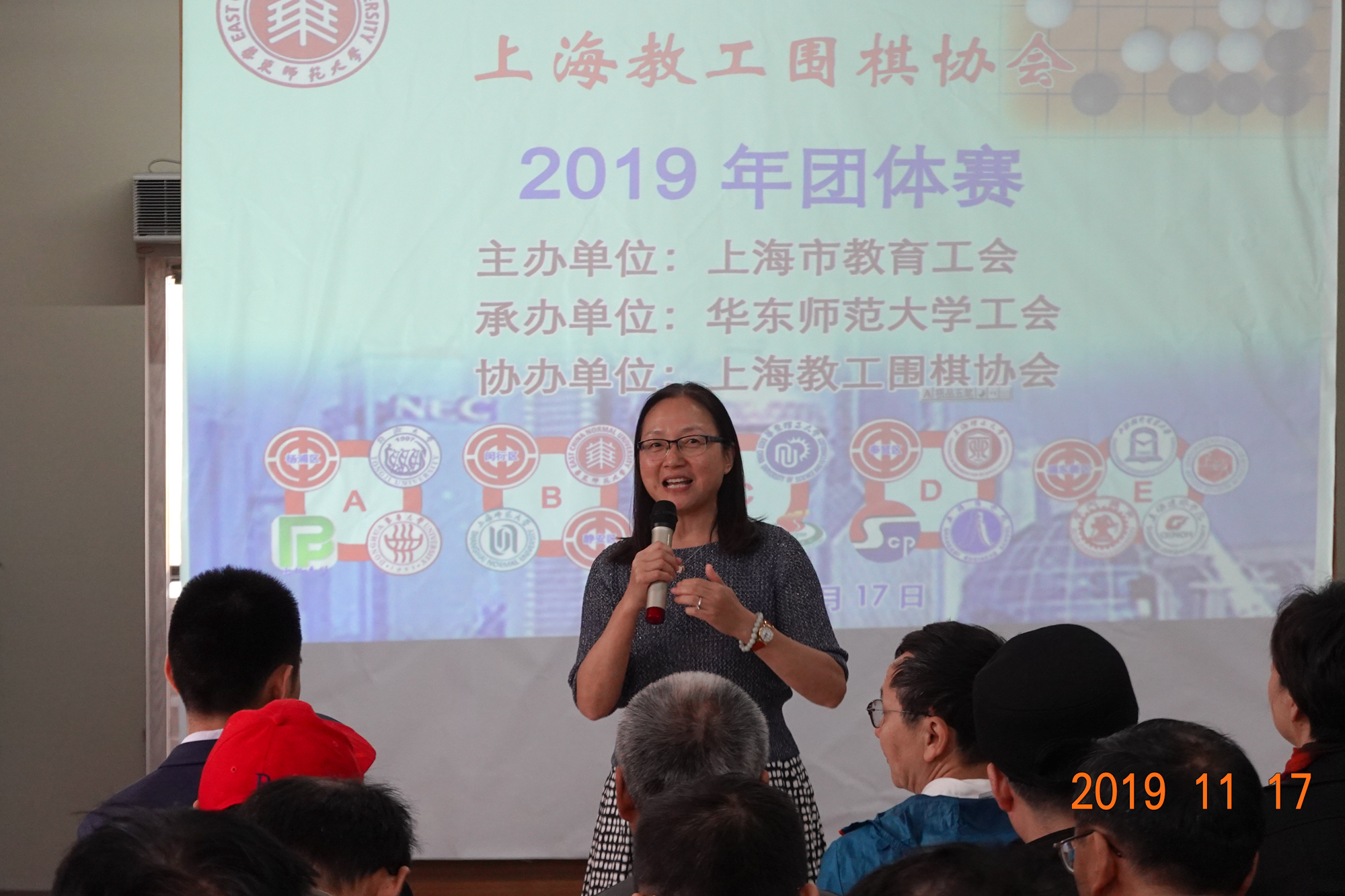 华东师大工会常务副主席王平代表承办单位致欢迎词,她对各参赛队伍来到华师大参加本次比赛表示热烈的欢迎,对上海教工围棋协会协会和为本次比赛付出辛勤汗水的组织者表示感谢。王平希望参赛队员能够在比赛中以棋会友、共同提高。