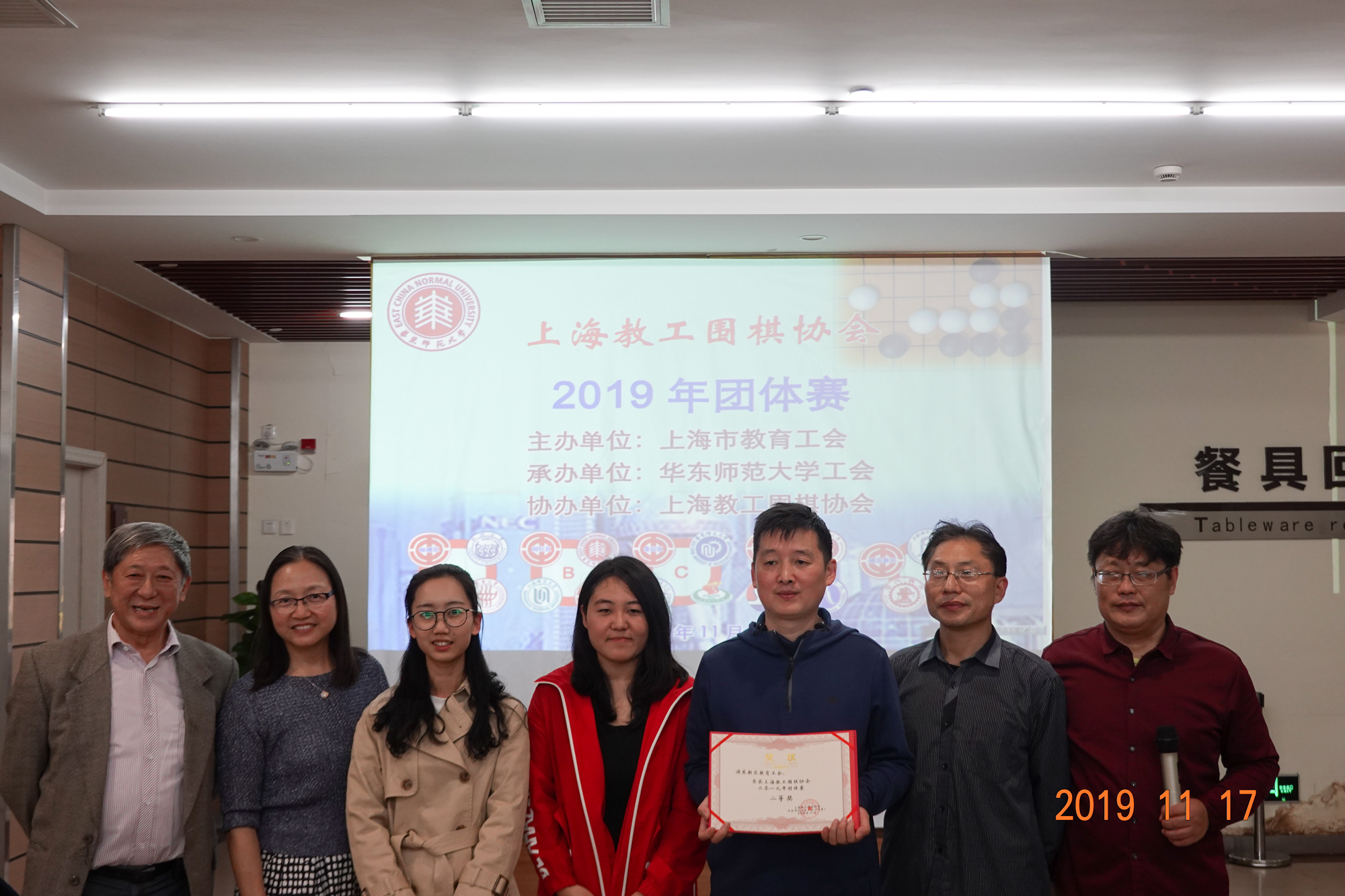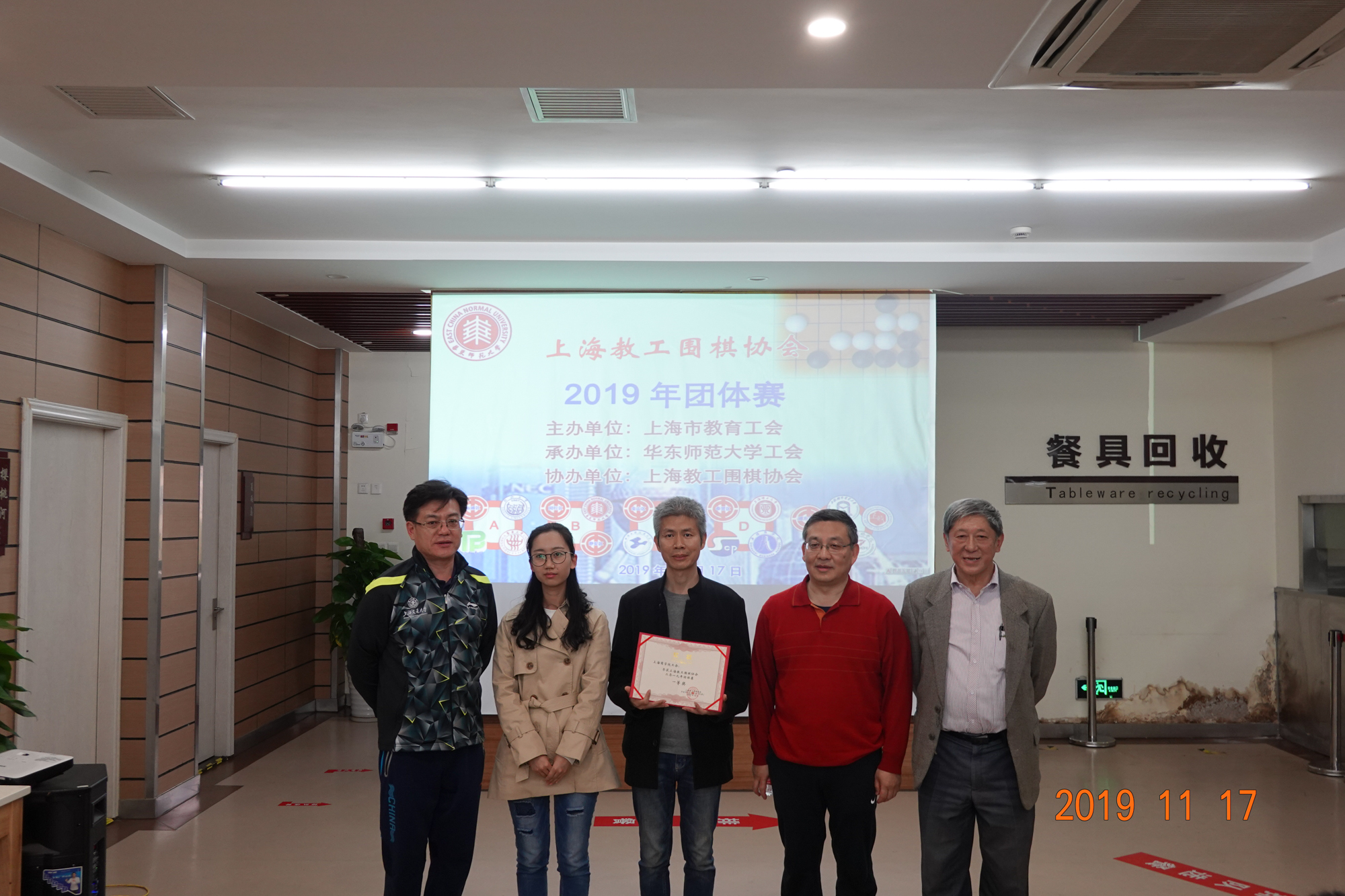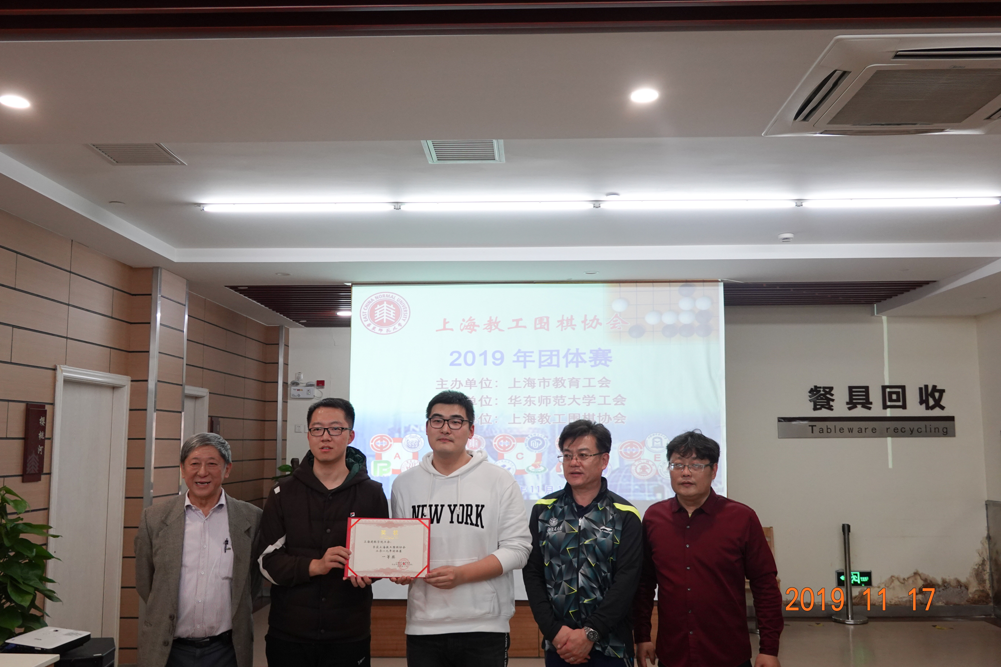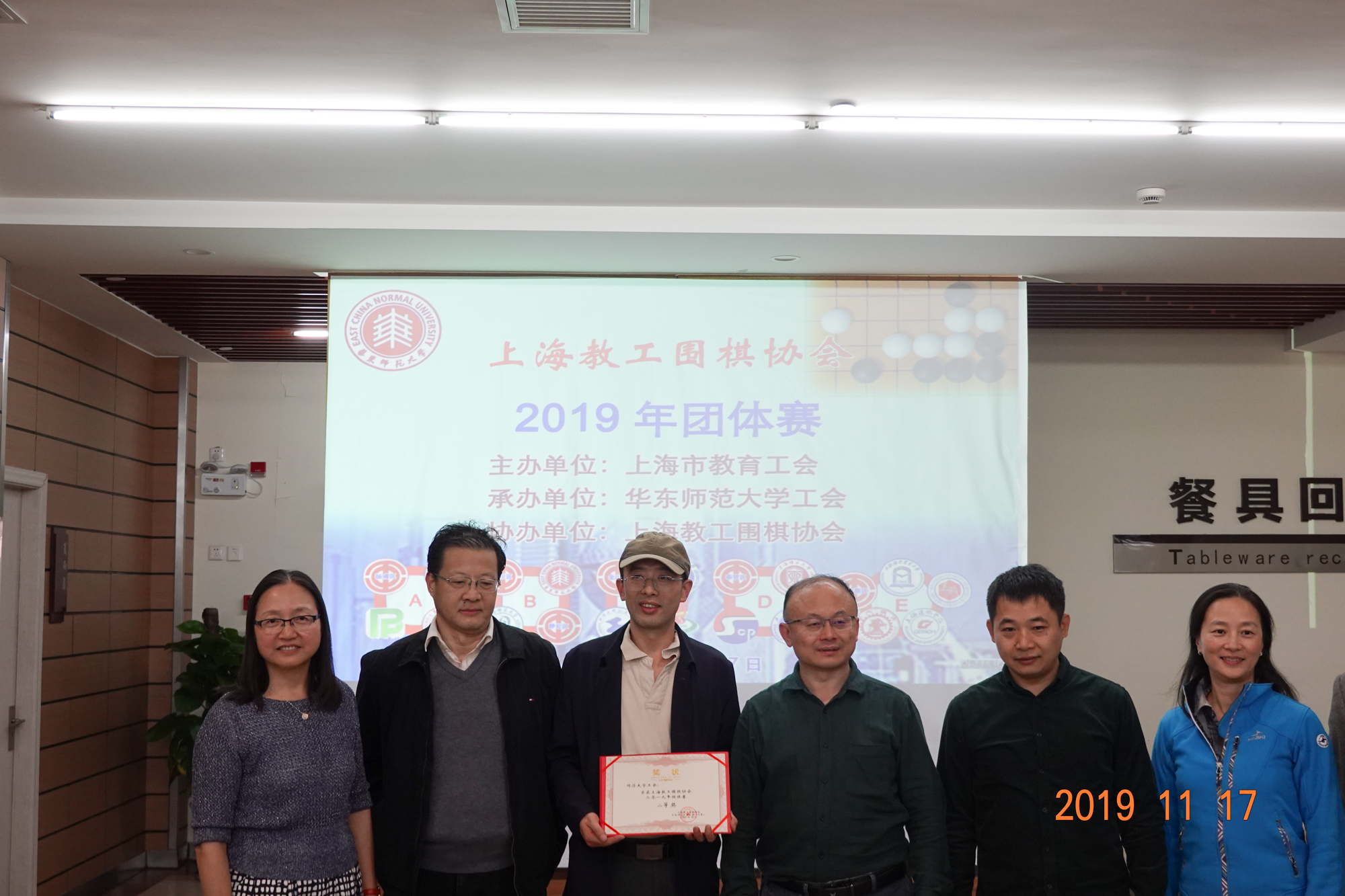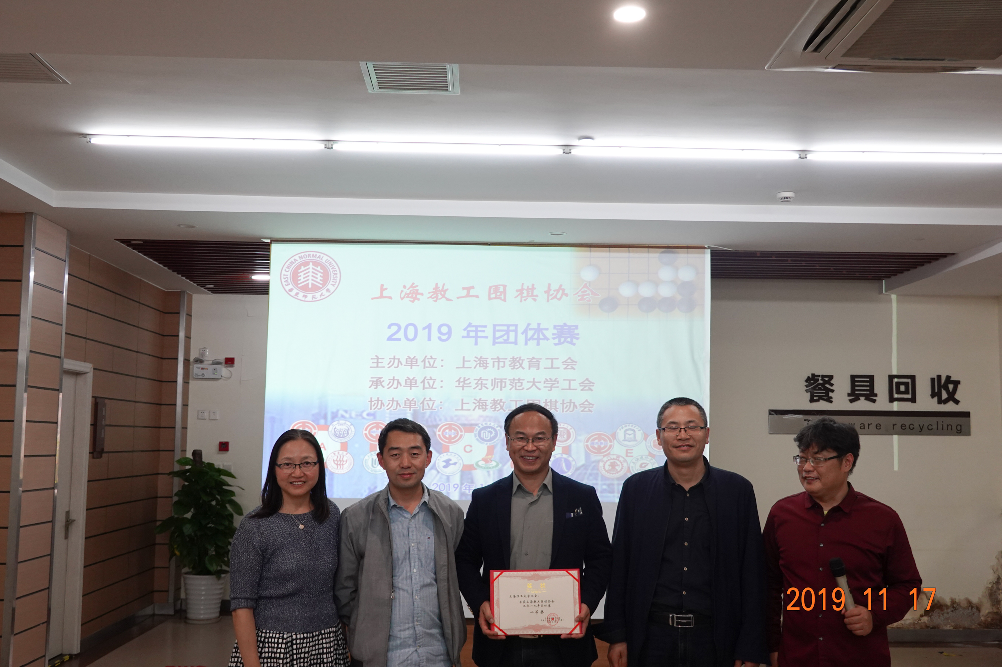 颁奖仪式上,上海教工围棋协会会长赵文庆、上海交通大学工会主席于朝阳、永利皇宫登录官网工会常务副主席王平、永利皇宫登录官网工会副主席李小英、静安区教育工会副主席李擎分别为获奖团队颁发奖状。