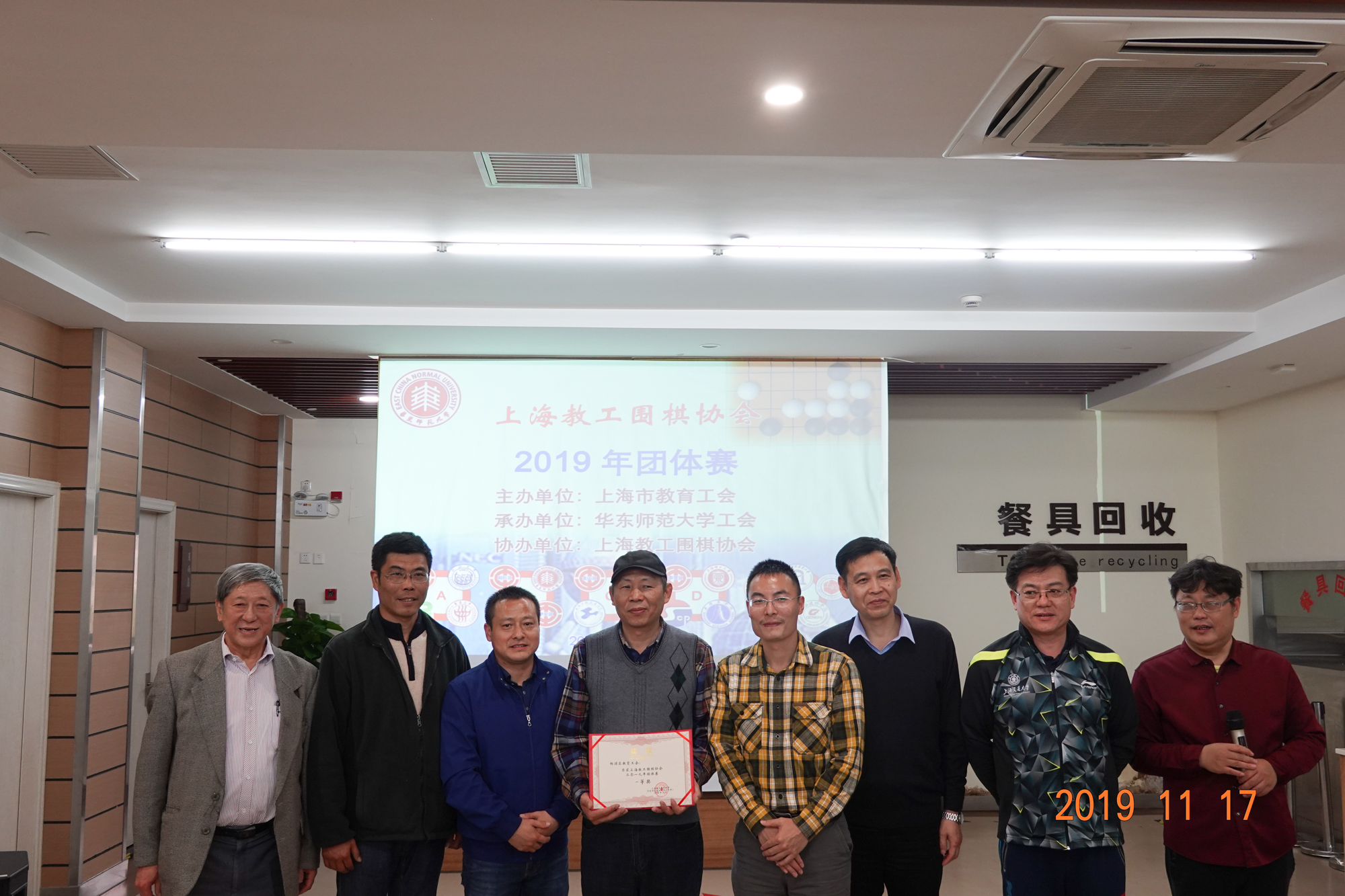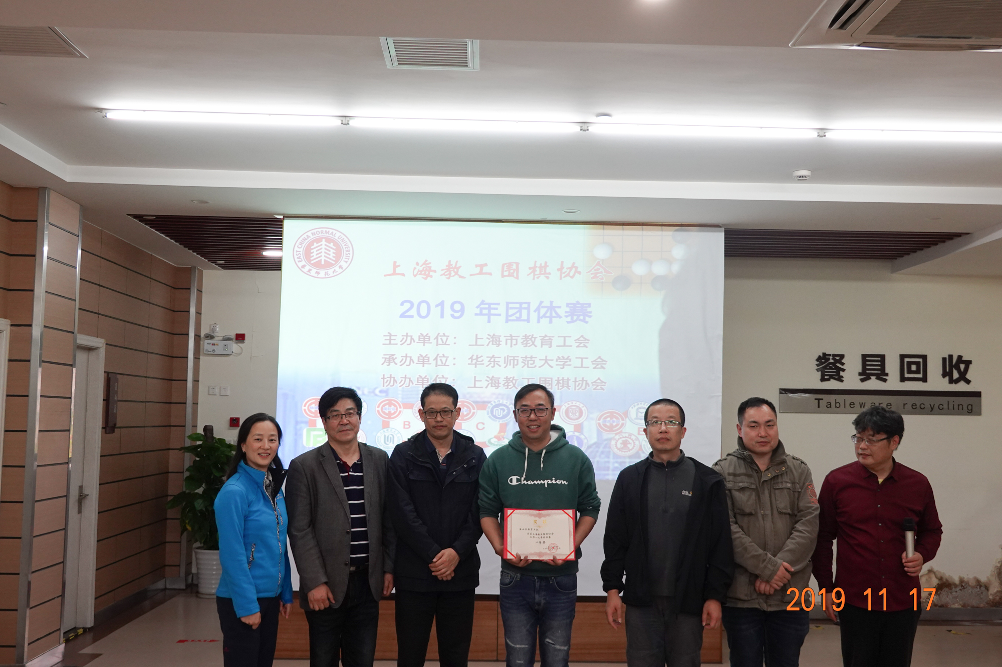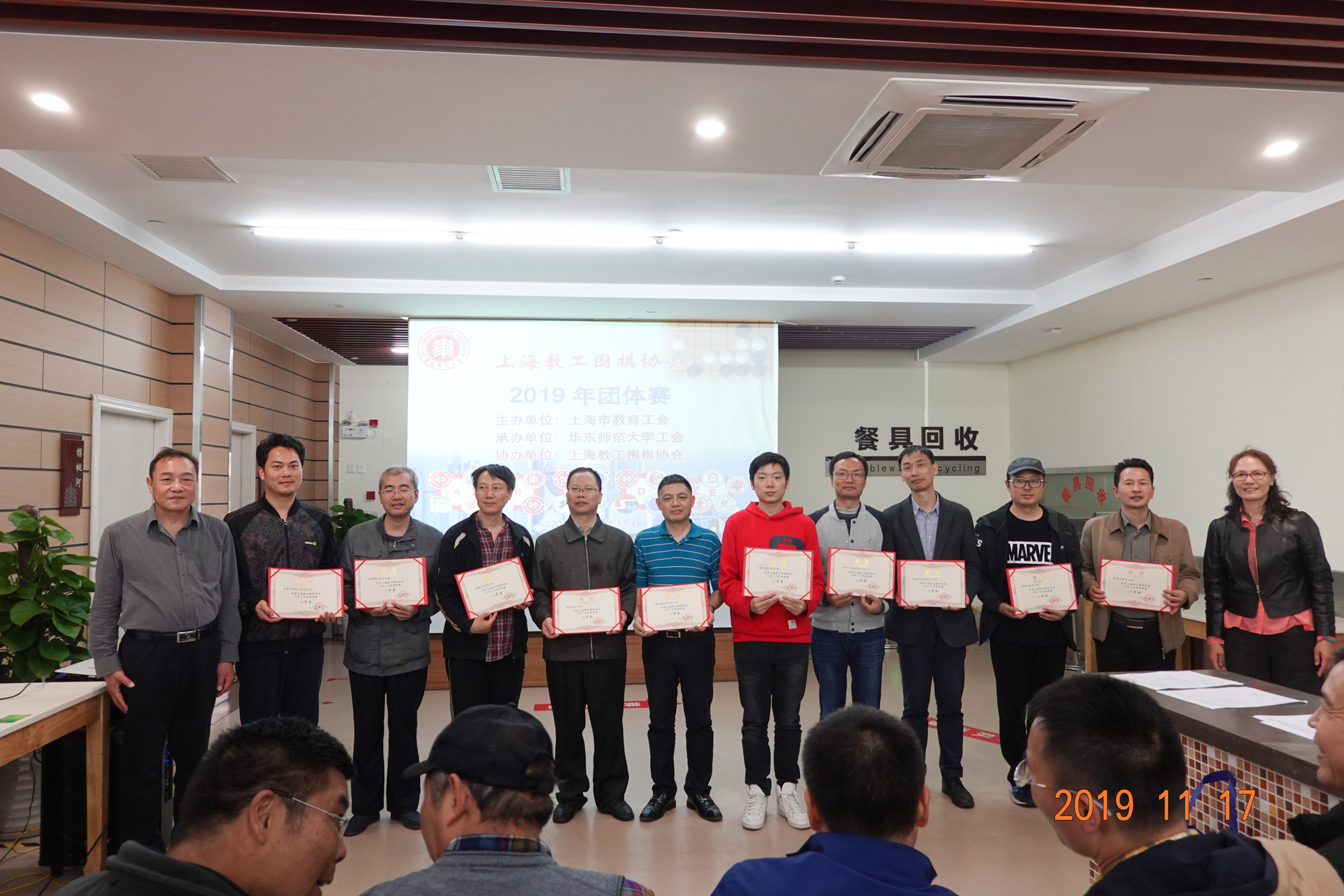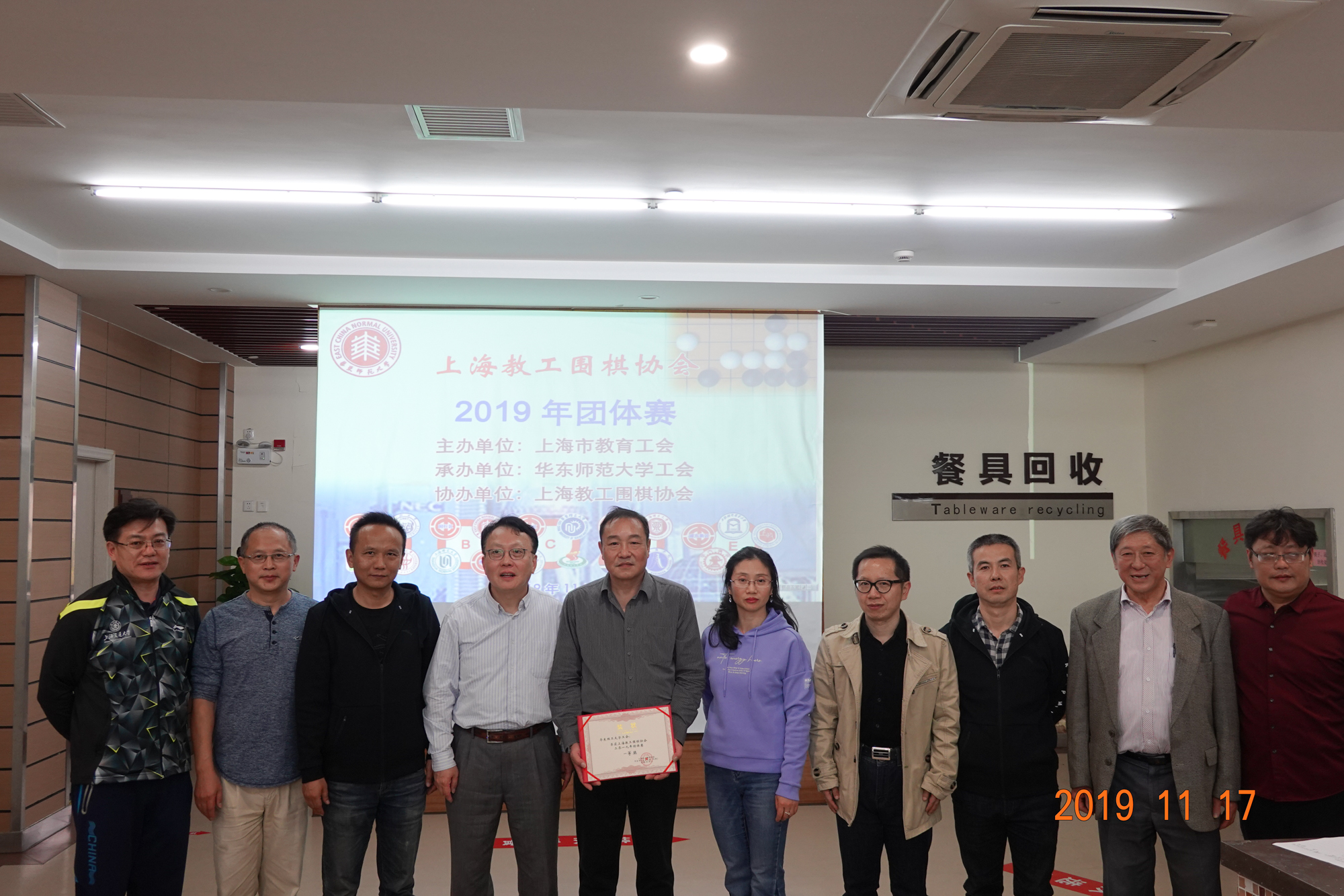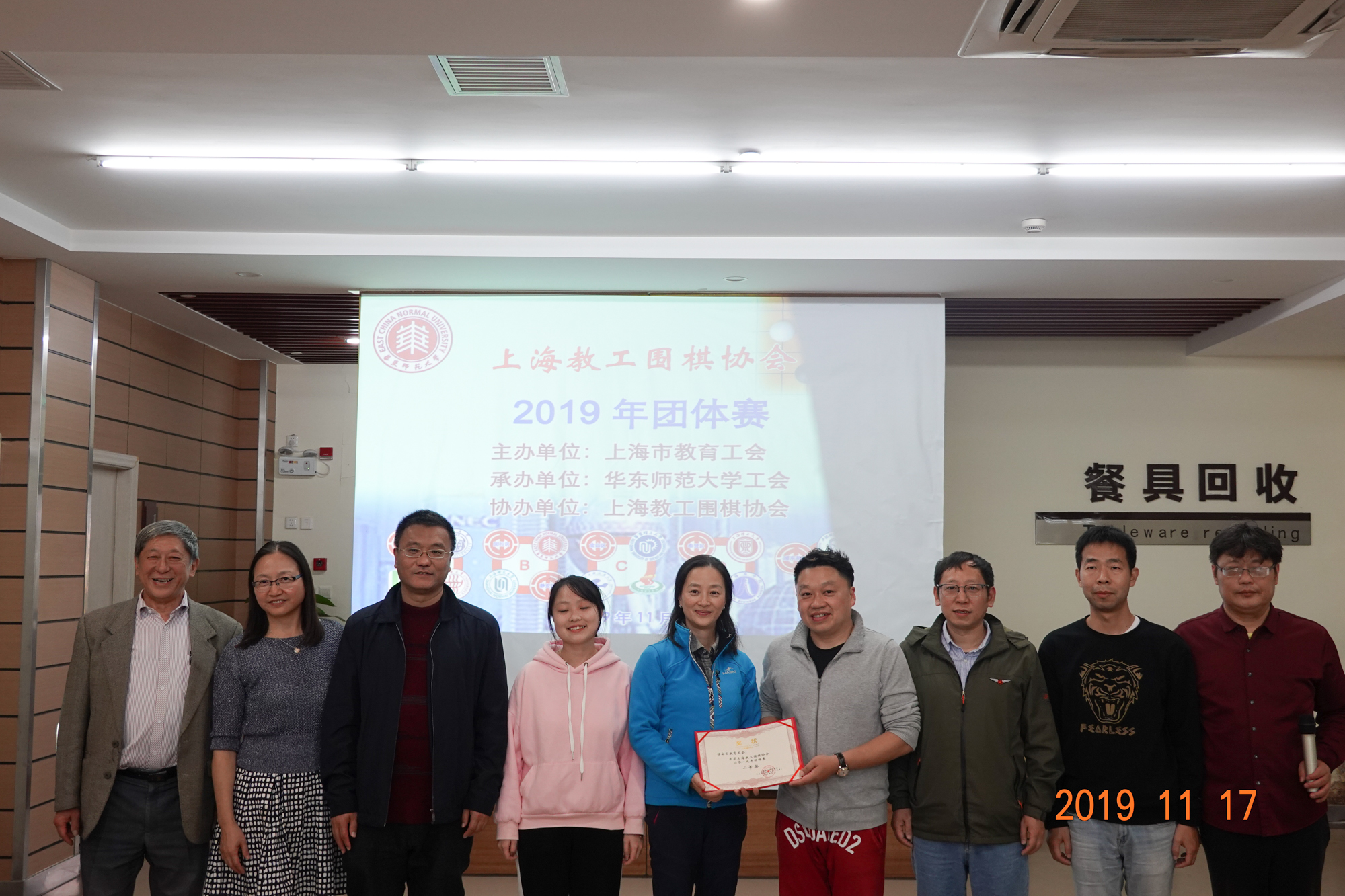 颁奖仪式上,上海教工围棋协会会长赵文庆、上海交通大学工会主席于朝阳、永利皇宫登录官网工会常务副主席王平、永利皇宫登录官网工会副主席李小英、静安区教育工会副主席李擎分别为获奖团队颁发奖状。