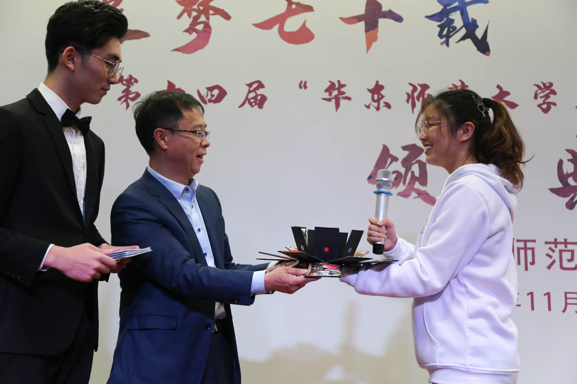 典礼现场,云友会代表所有获奖受助学生向明泉集团的领导赠送了手工制作的花开相册,以表达大家的感激之情。