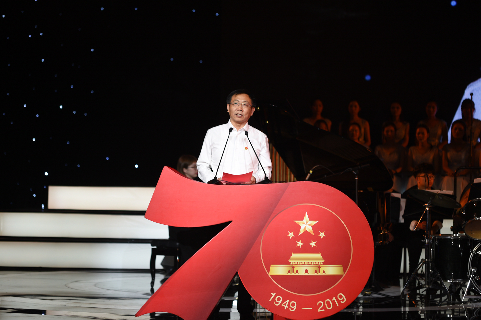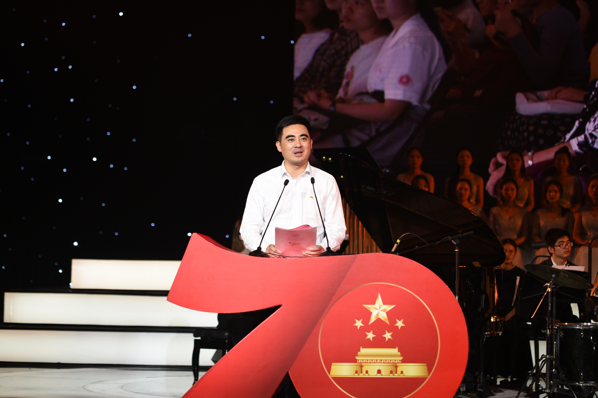 新中国七十华诞前夕,“我和我的祖国”永利皇宫登录官网主题党日活动暨音乐党课于9月28日晚举行首演并面向全球直播。师生们用歌声致敬伟大祖国,为“守初心、担使命”汇聚能量。校领导钱旭红、朱民、王宏舟、杨昌利、曹友谊、孙真荣、李志斌、周傲英、戴立益,教育部直属高校第六巡回指导组组长朱拓、副组长刘建中等全体成员出席活动。