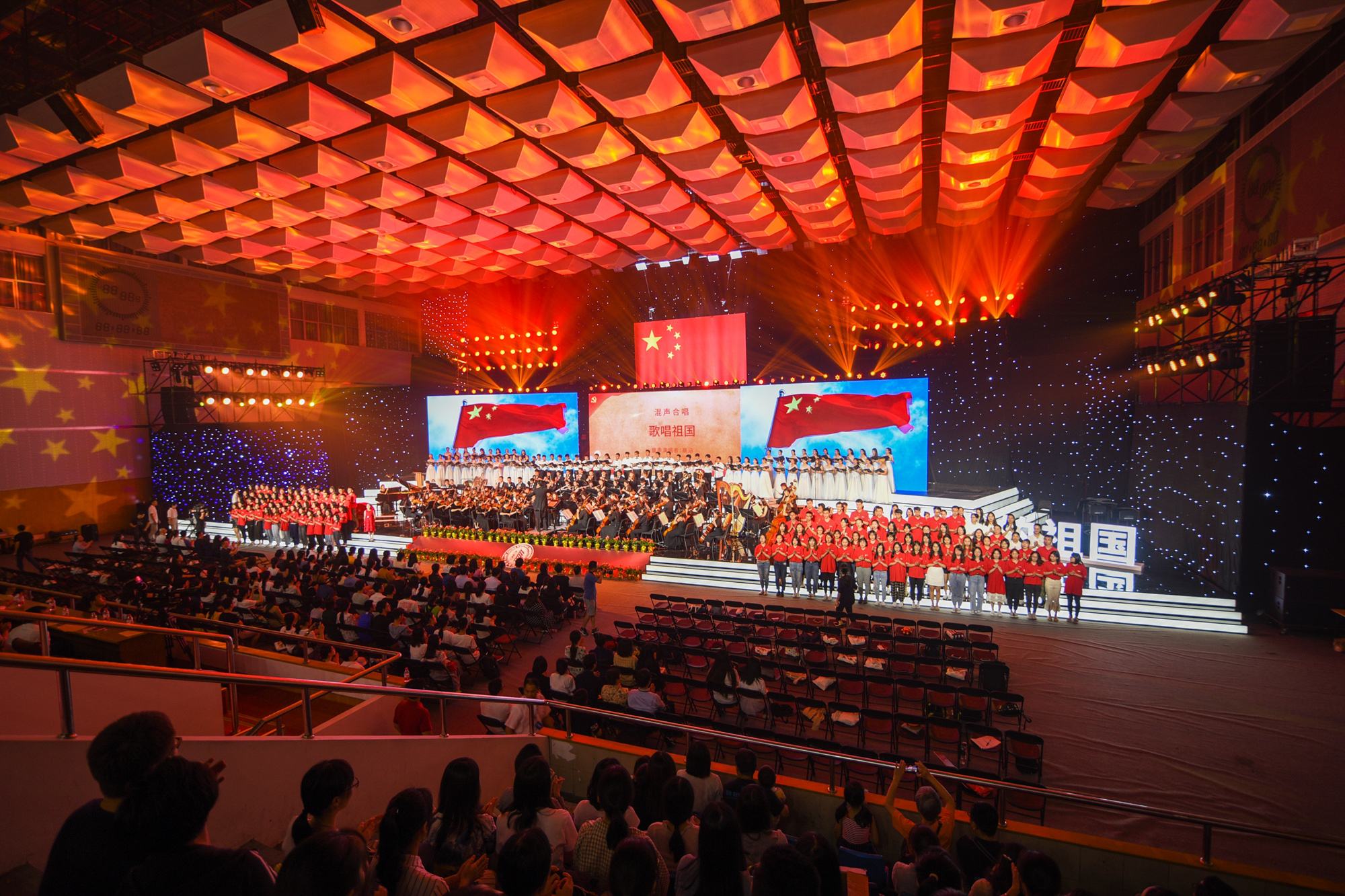 不忘初心、牢记使命。整场活动让家国情怀在党课讲述中内化升华,理想信念伴随音乐旋律入耳入心,全校师生以永不懈怠的精神状态和一往无前的奋斗姿态,又一次吹响了勇担教育强国使命的号角。活动连续两天举办两场,两千余位师生现场观看,万余名观众通过直播收看。