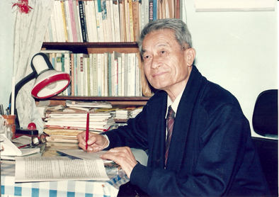 我校中文系教授徐中玉先生在书房
