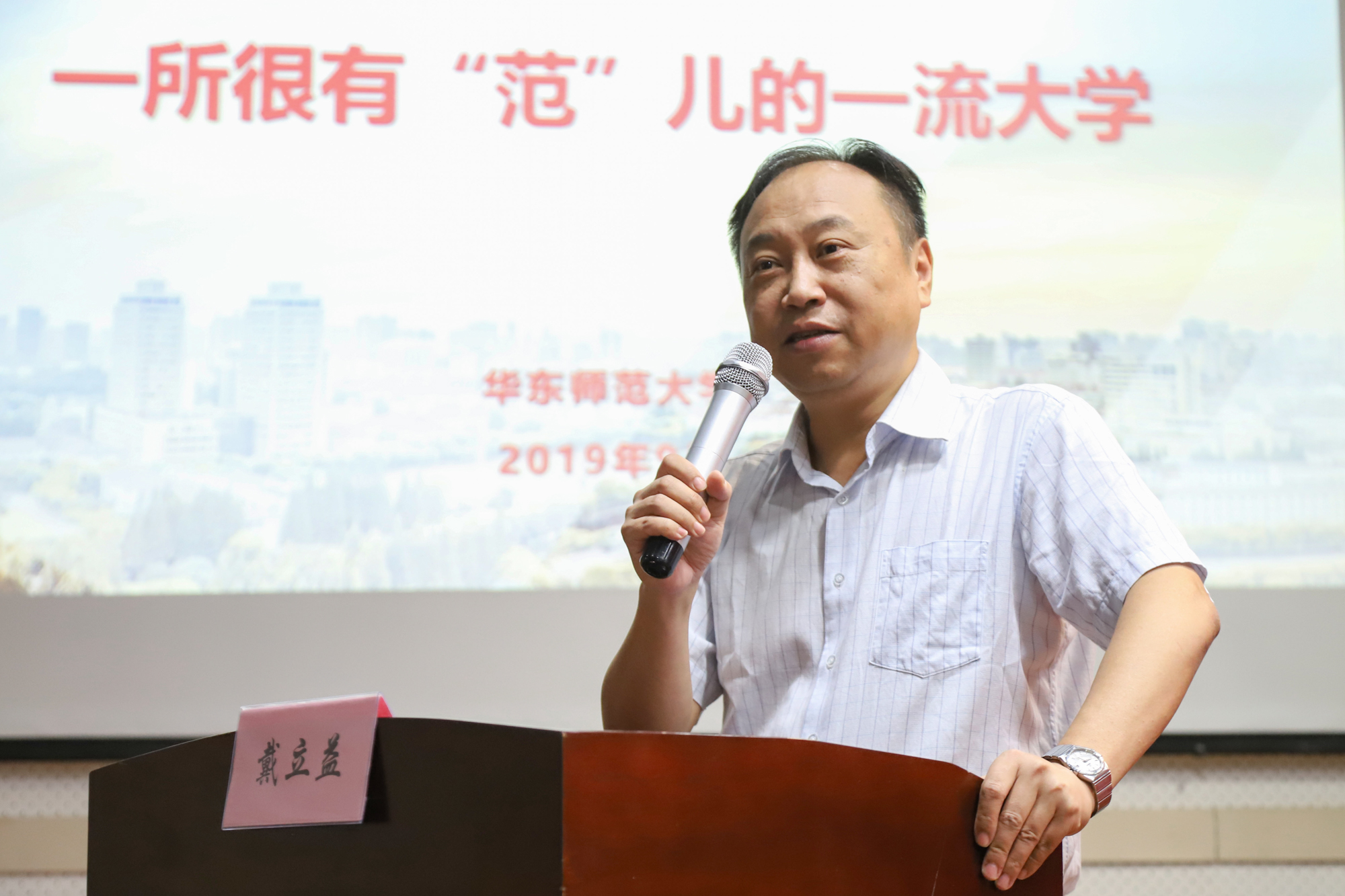 “大家进入华东师大,不光是进入一个特定地方,也是进入一个特定共同体。”“作为新中国组建的第一所社会主义师范大学,华东师大始终以培养优秀人才、服务国家建设为己任”;“爱在华师大,就是发扬前辈的优秀传统,在优雅学府中成长为栋梁学子”。9月5日上午,闵行校区体育馆内座无虚席,校党委书记童世骏正在给光华书院、马克思主义学院、数学科学学院、历史学系、社会发展学院的2019级新生上第一堂思政课。亲切的语言、生动的举例、有趣的故事、零距离的互动……台下的新生们第一次感受到了大学思政课的魅力。