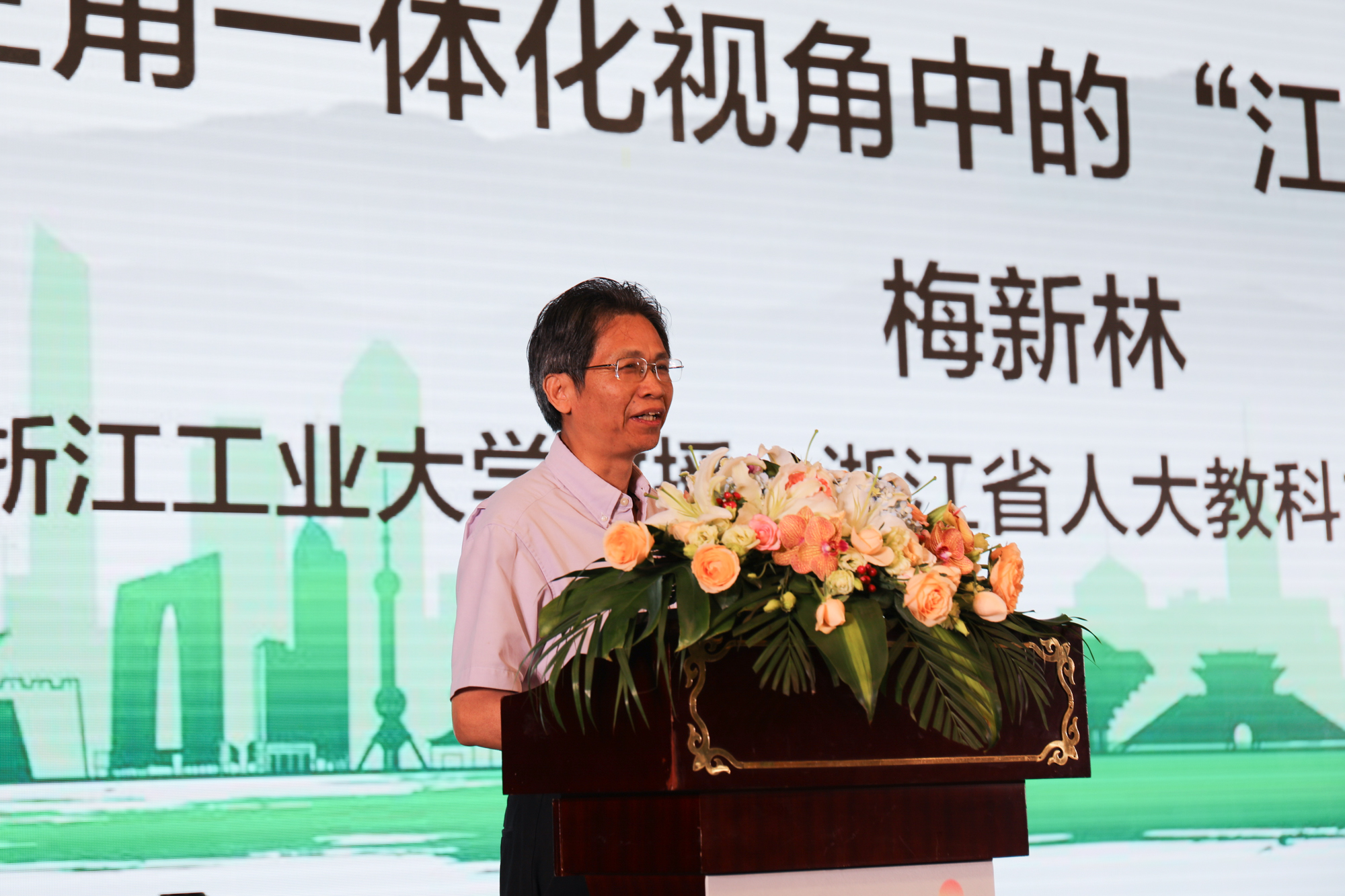 浙江工业大学教授、浙江省人大教科文卫委员会副主任梅新林作报告