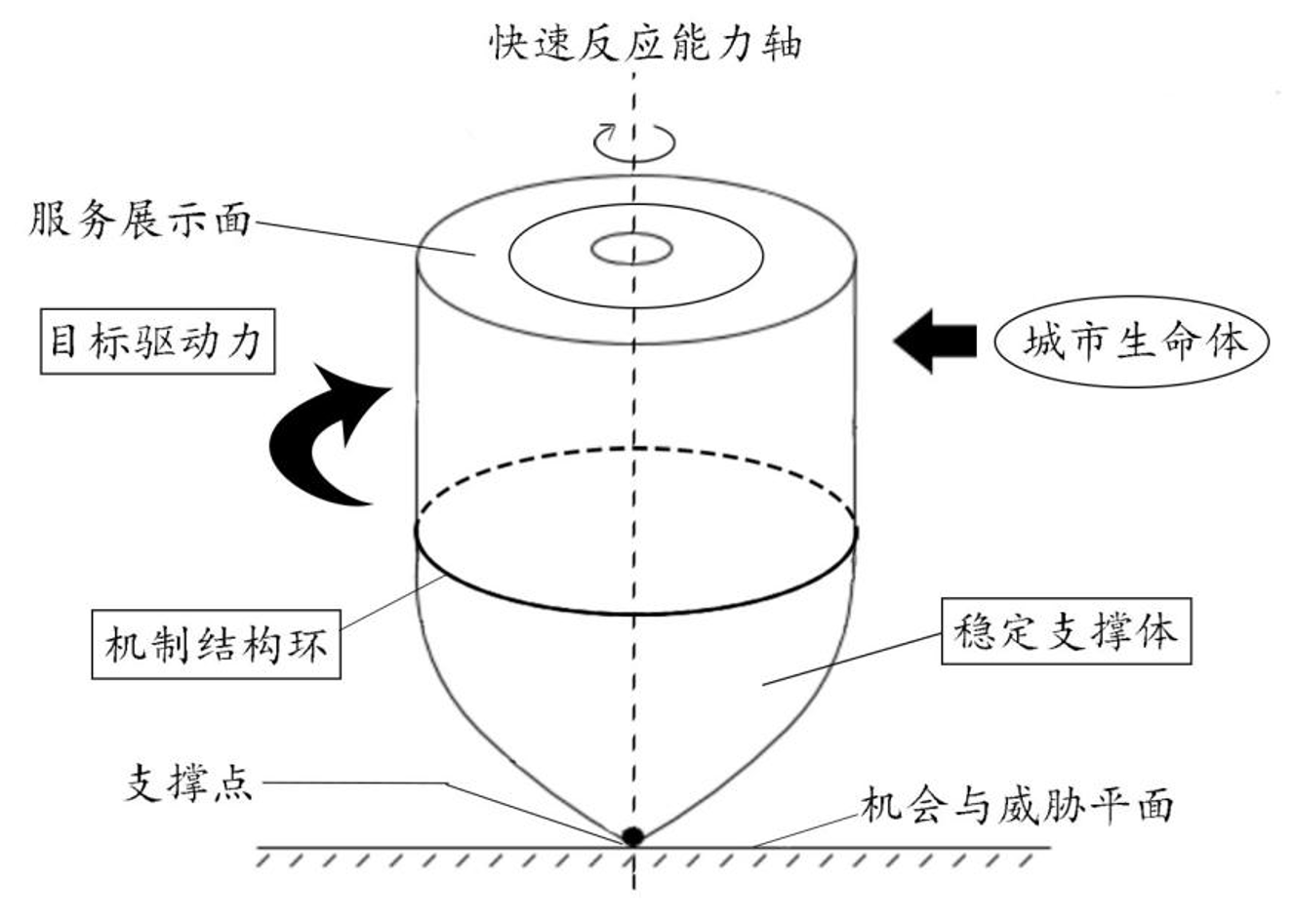 在当下,快速变化的国内外环境,数字技术对传统产业的颠覆,人民对智能化生活的需求等,都要求城市加快数字化转型的步伐。符合“陀螺原理”的解释,城市也是有目标驱动、对外开放、有学习能力的有机生命体,数字化转型即城市“陀螺”的在数字化目标下的旋转运动。因此,可将“陀螺模型”应用于城市数字化转型研究中,可以系统和动态地描绘运行机制,从而有助于在复杂和动态的环境中对城市数字化转型进行有效的战略性引导。